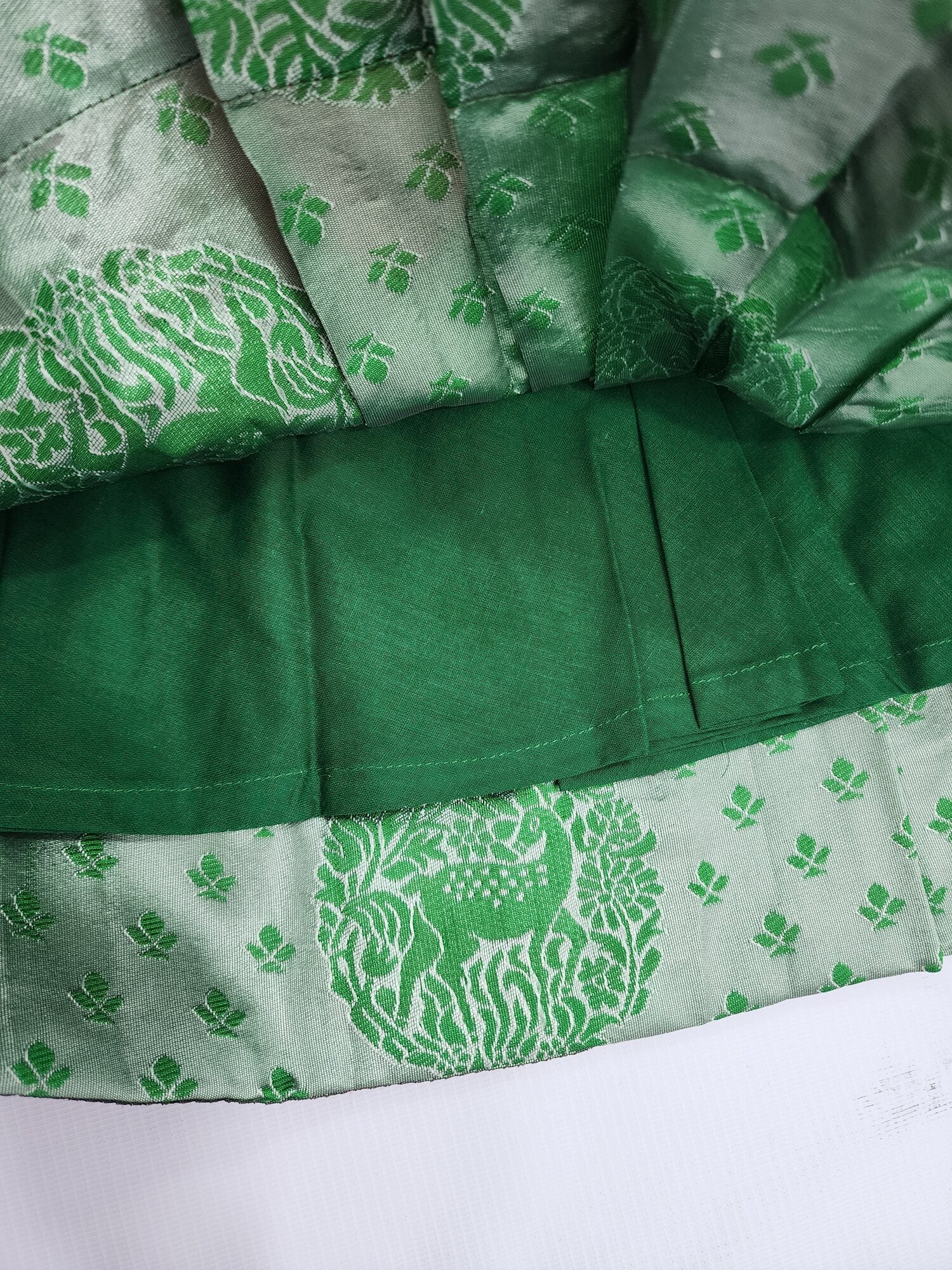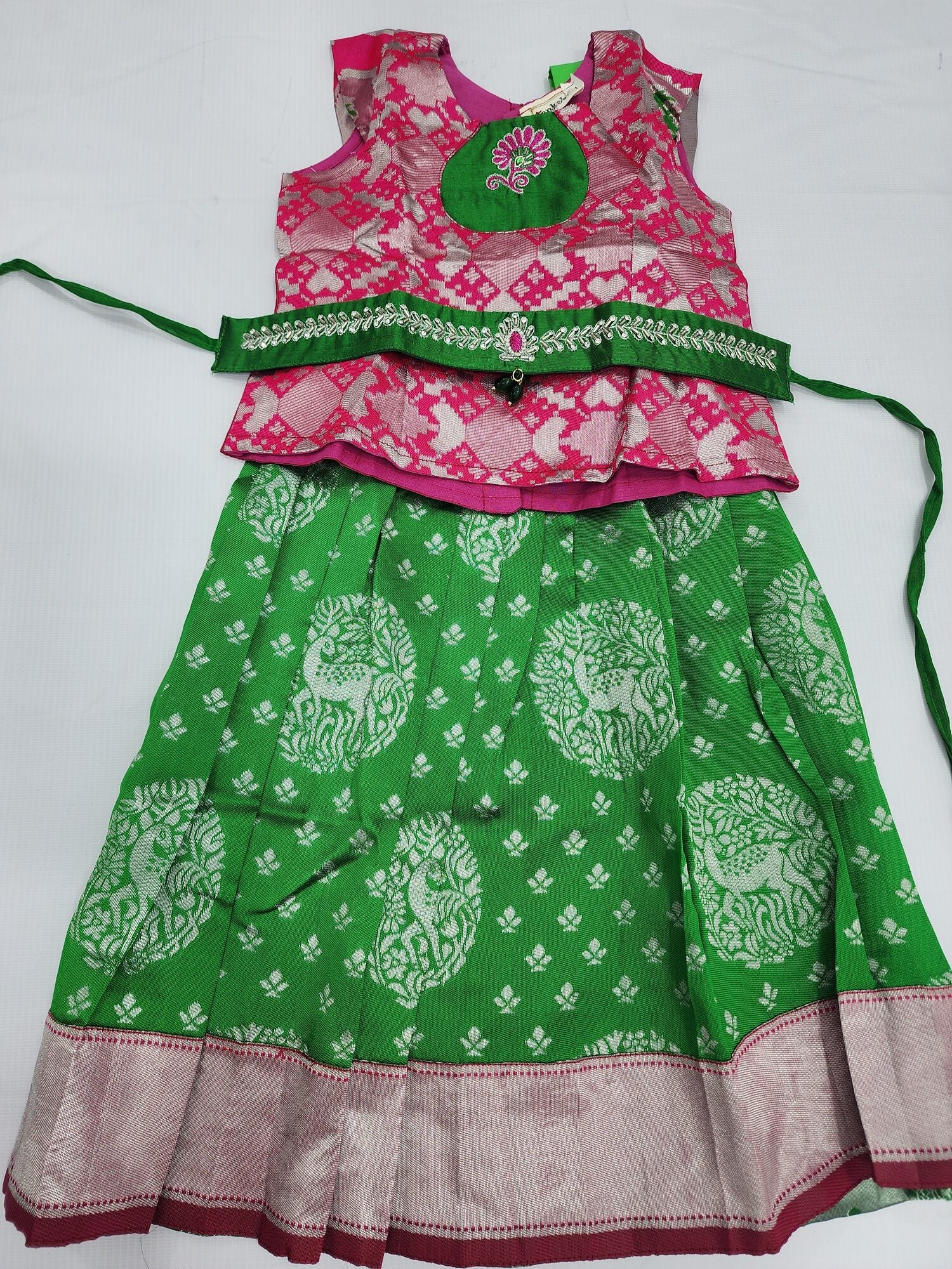 featuring a waist belt customized with hand embellishments and lined with cotton.
