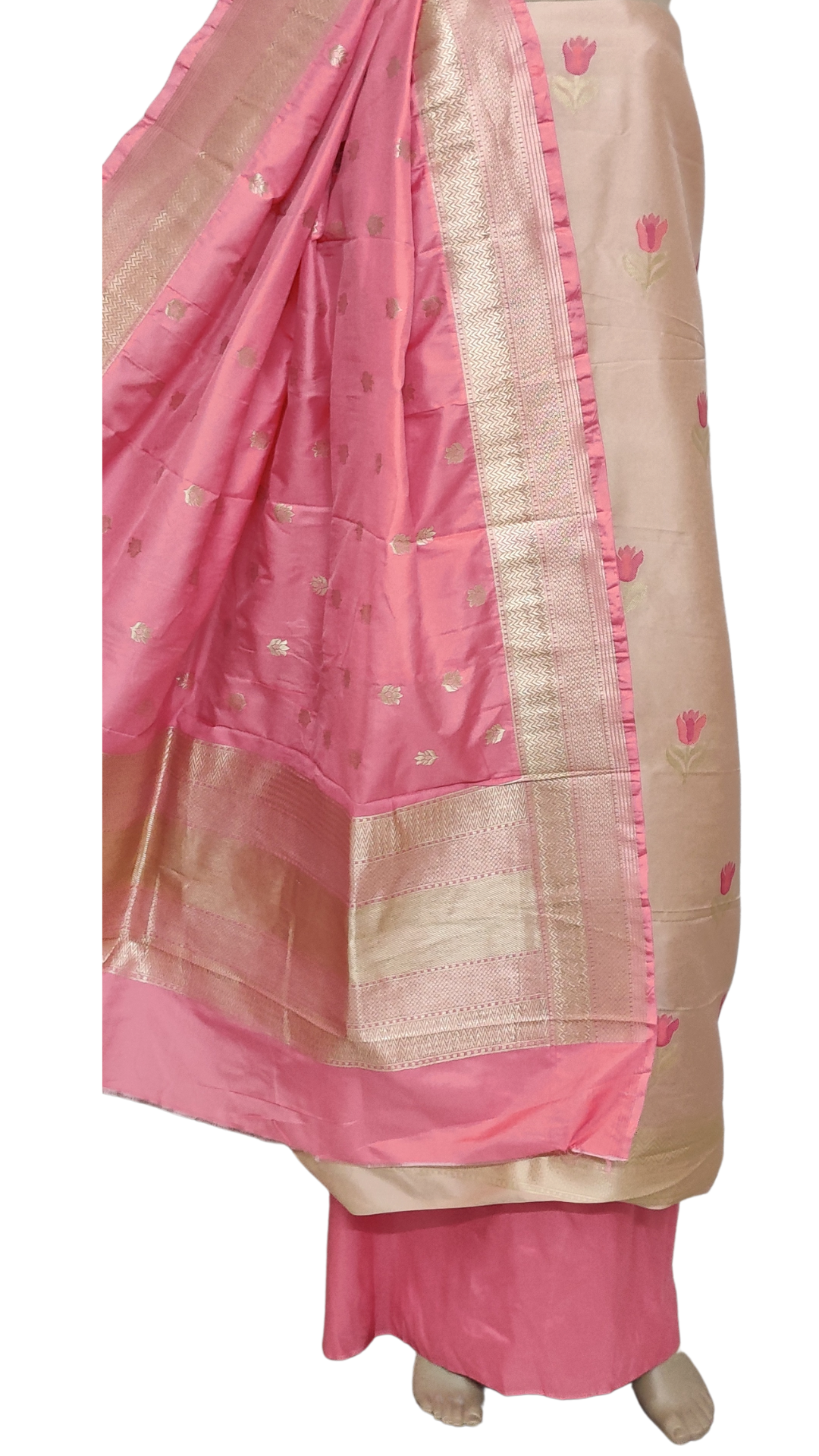 Banaras Dress Material with Peach&Pink