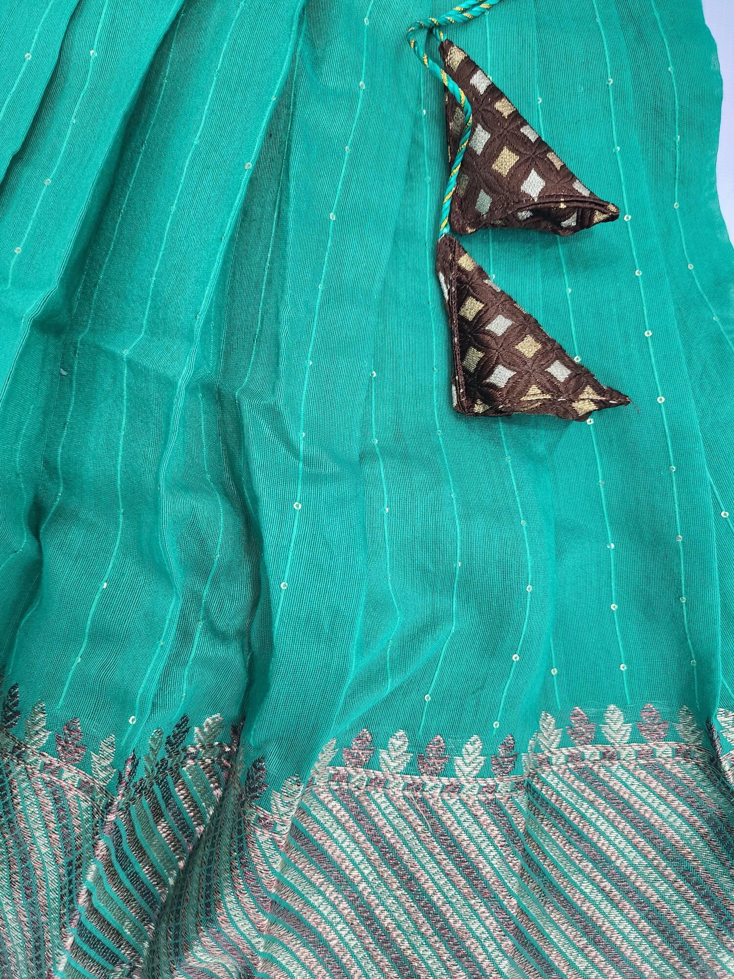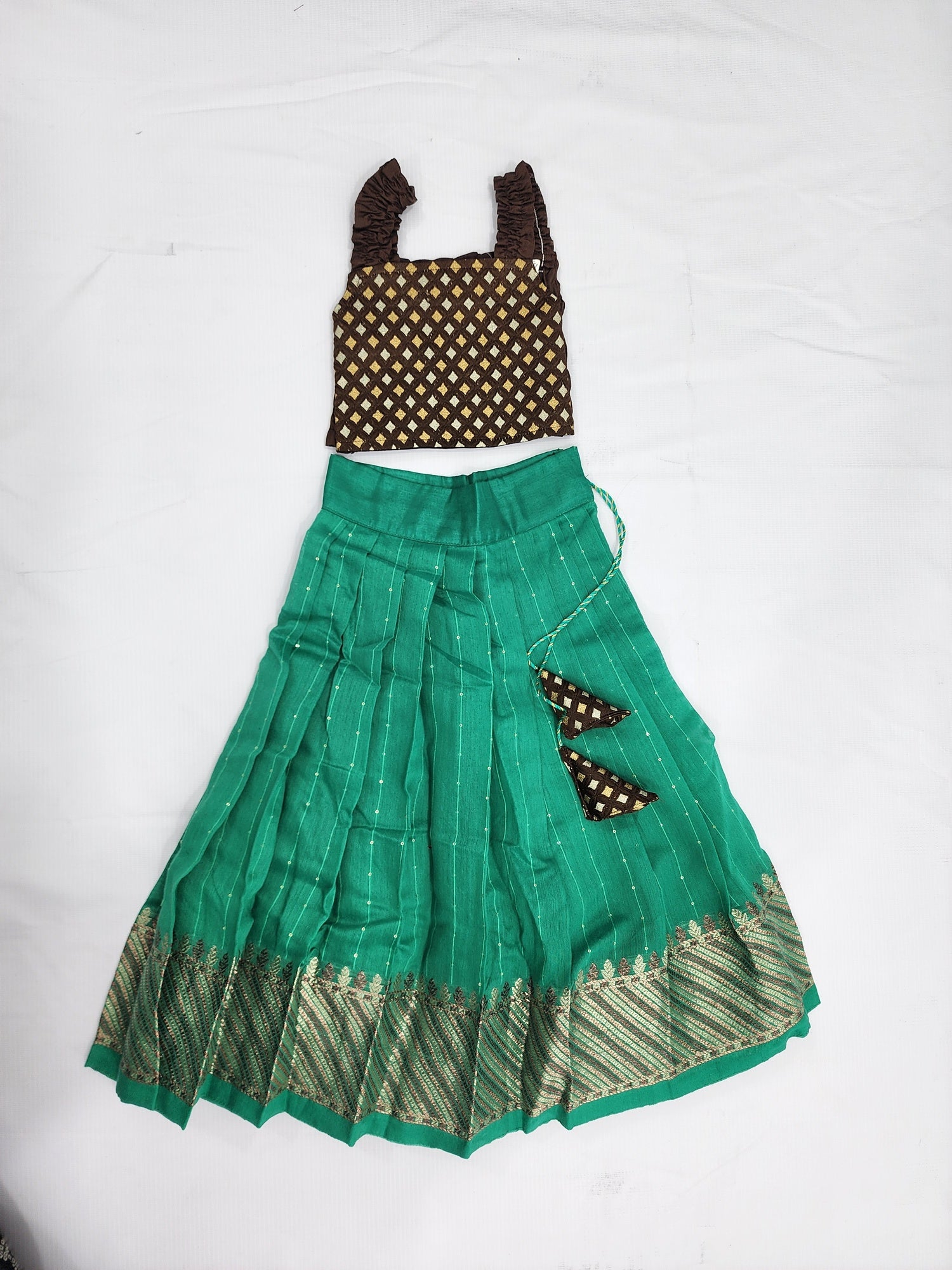 Strap on waist for Lehenga with side hooks, making it easy for kids to wear.