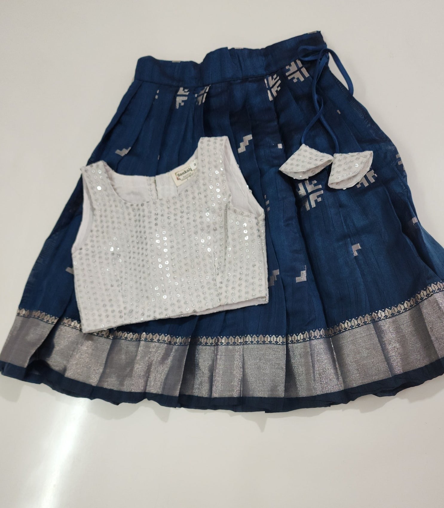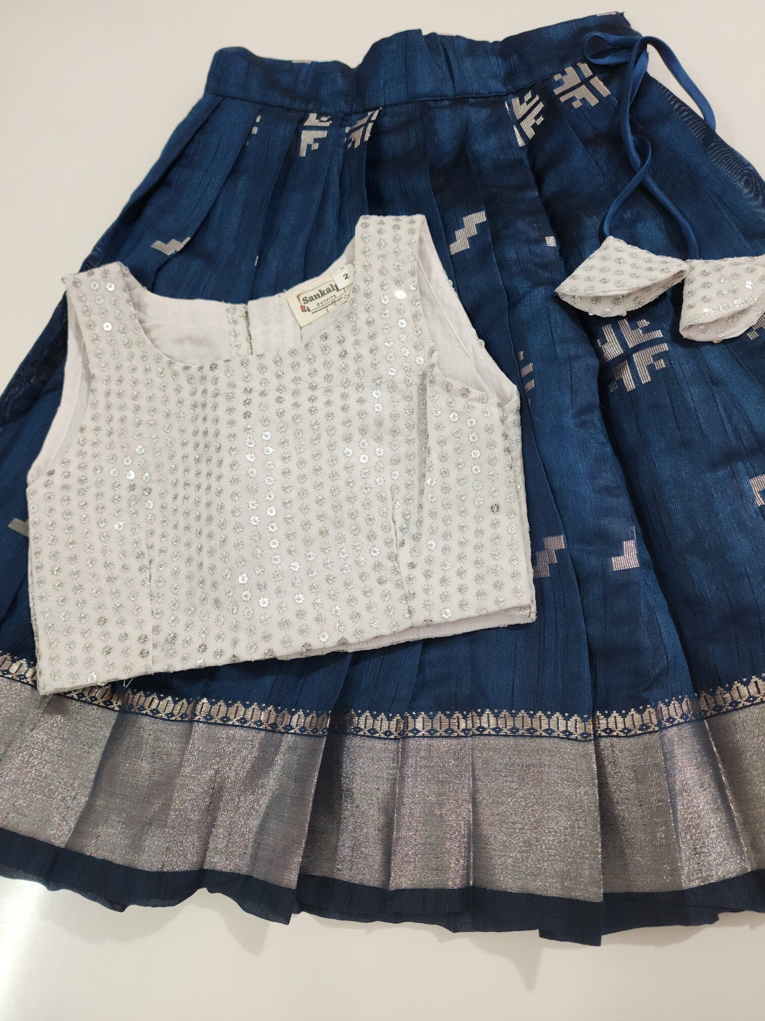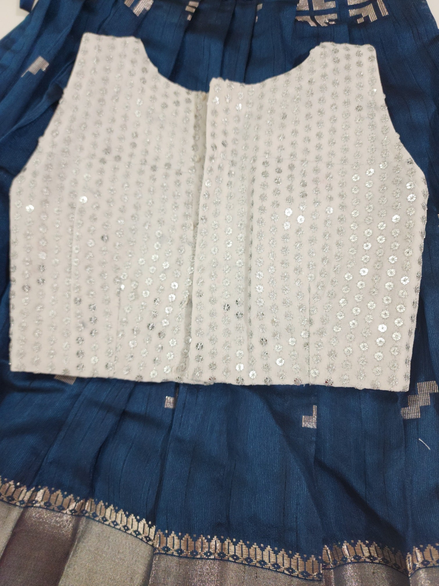 Strap on waist for Lehenga with side hooks, making it easy for kids to wear.