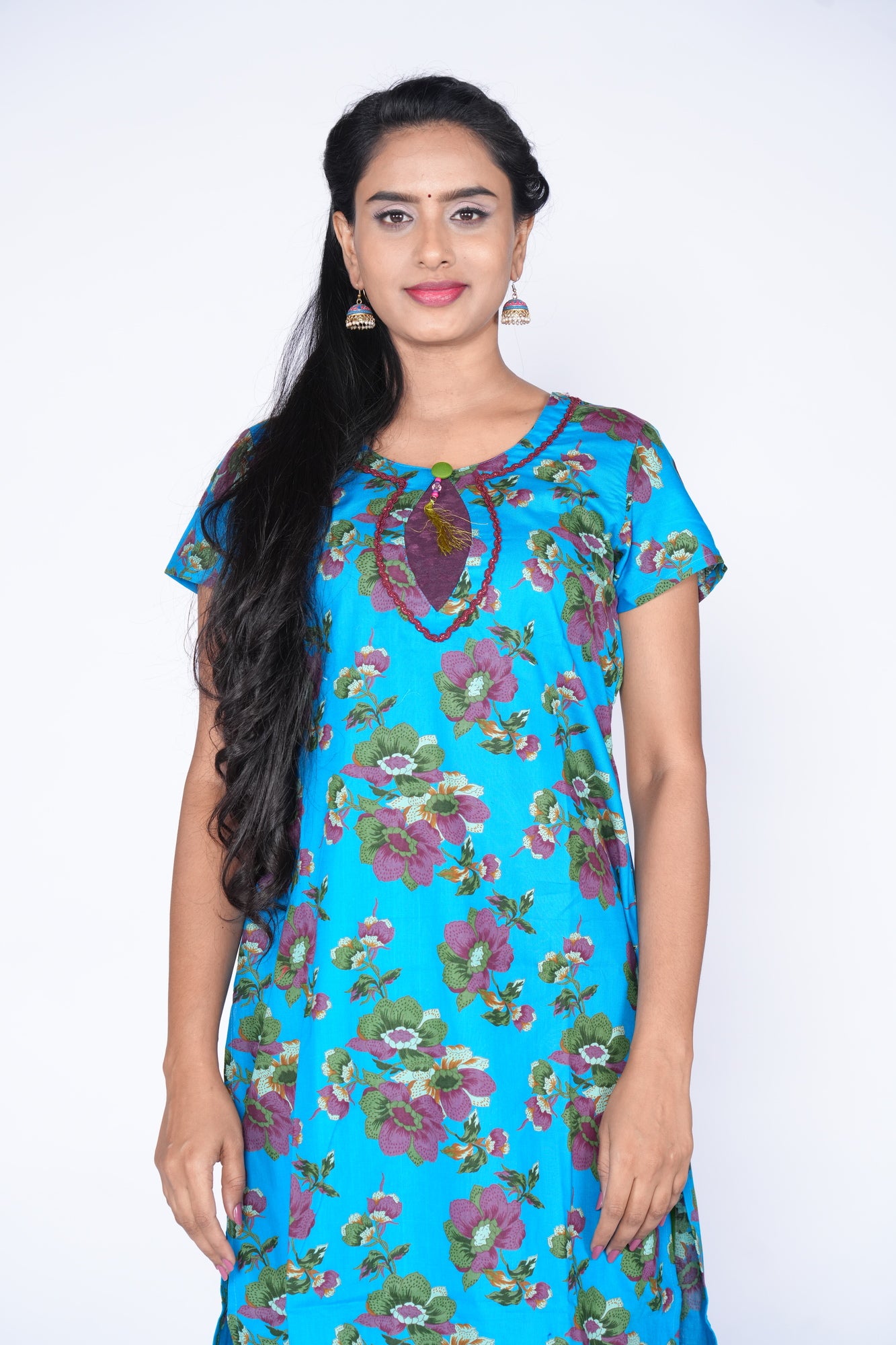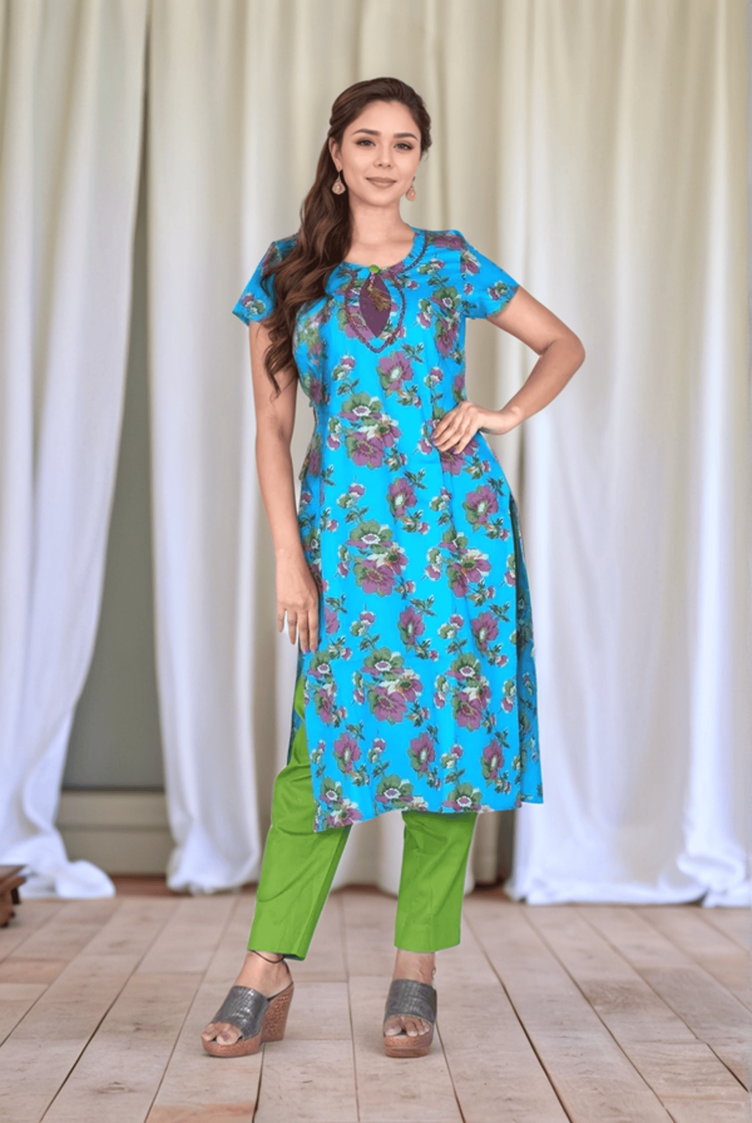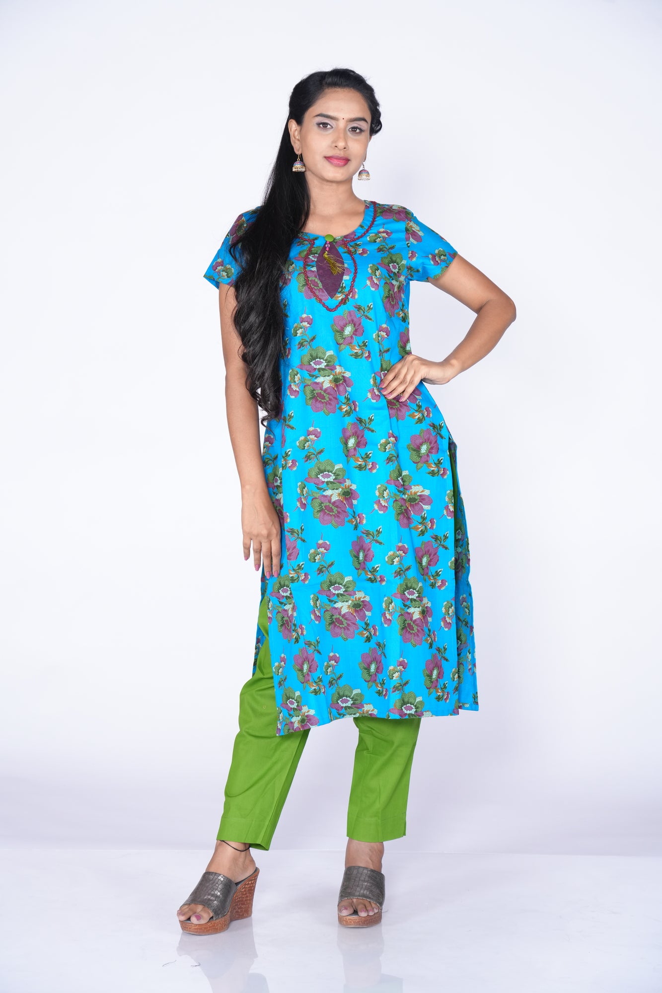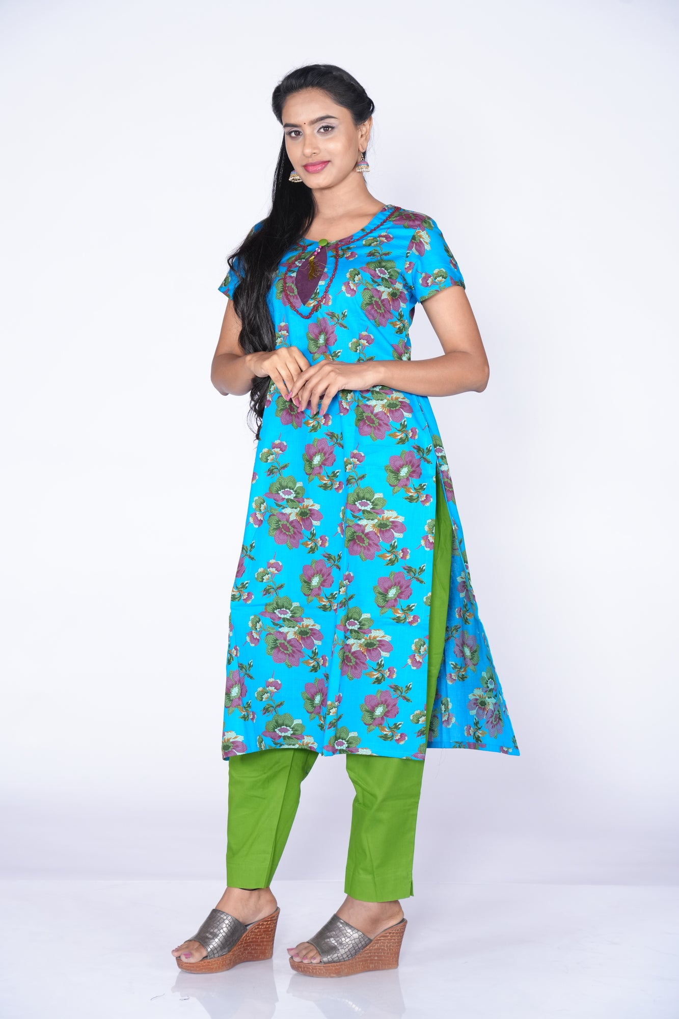 - Sky Blue colour kurta Design with floral print