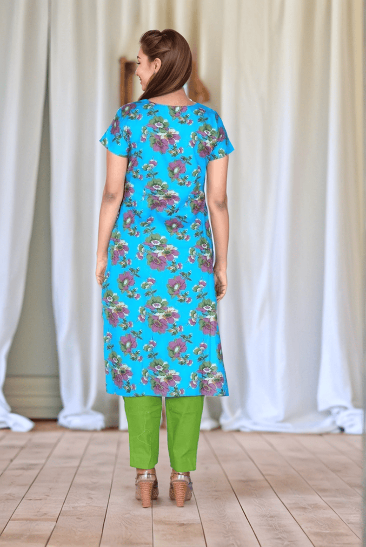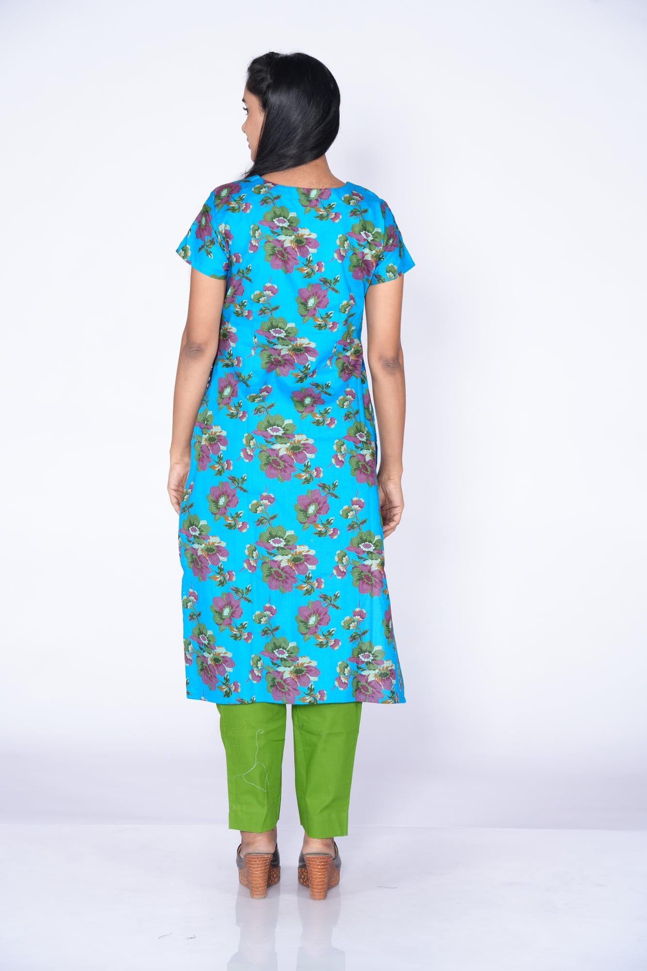 floral print Blue Cotton Kurti