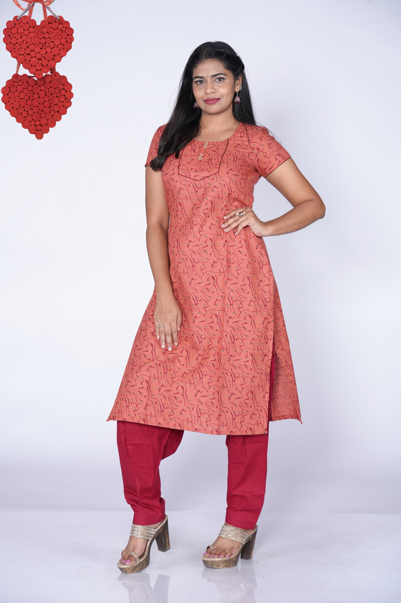 - Knee-length Brick Red Design Kurti for everyday elegance.