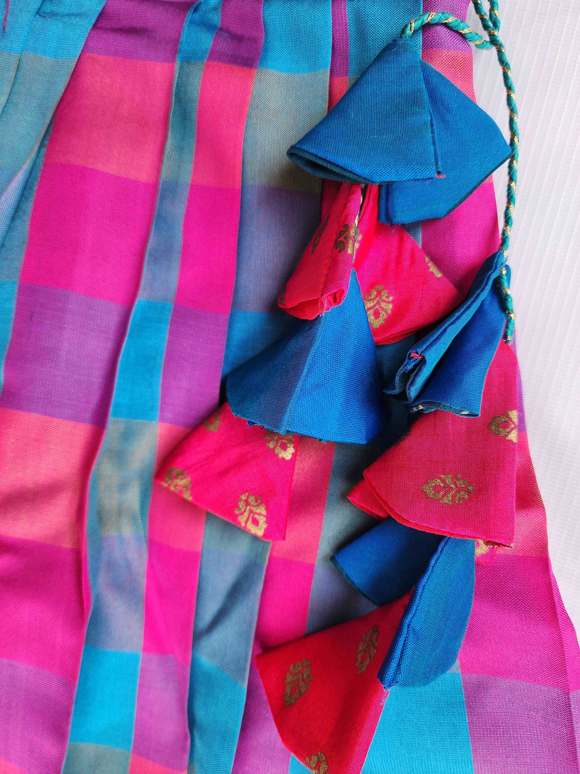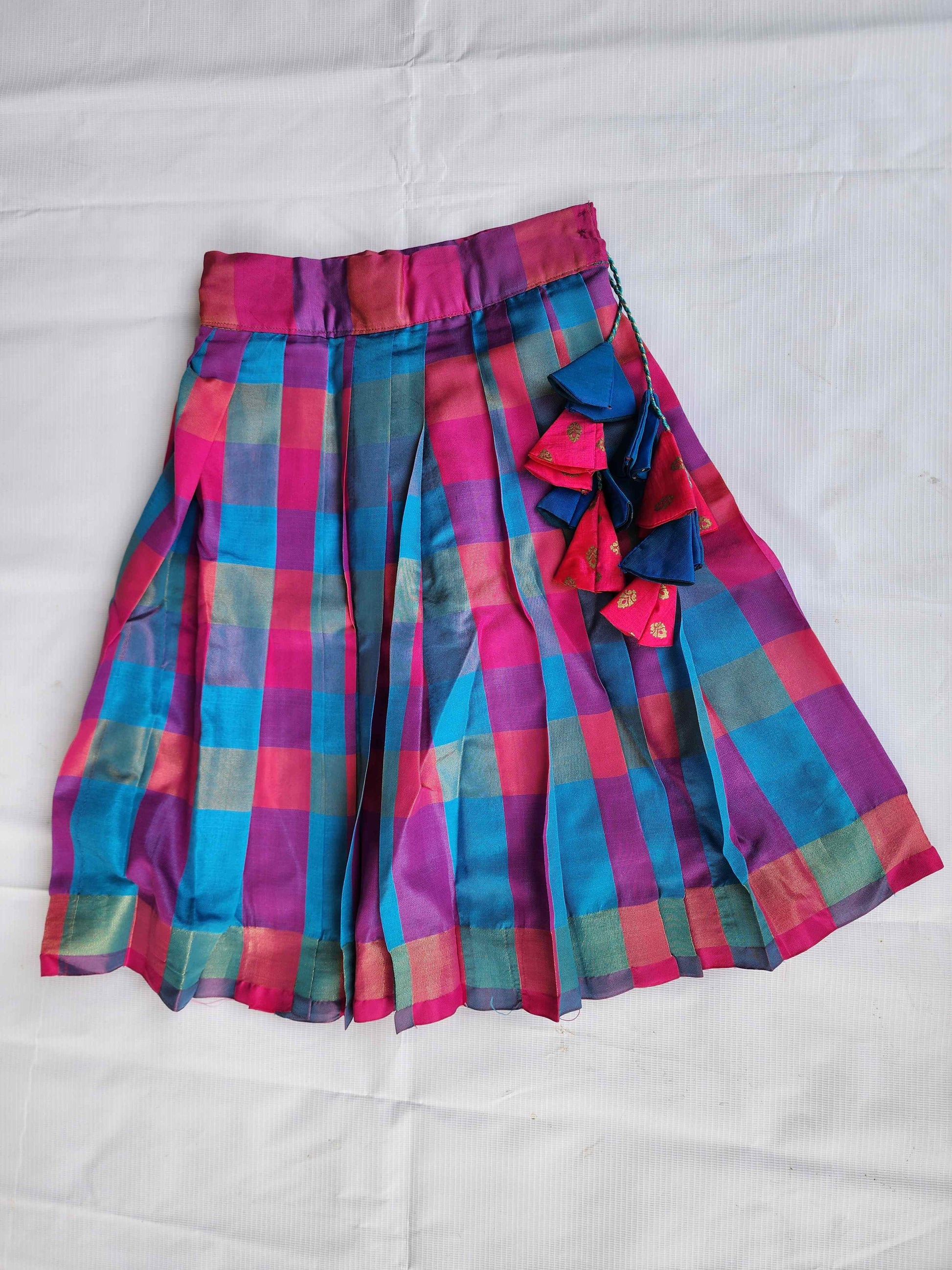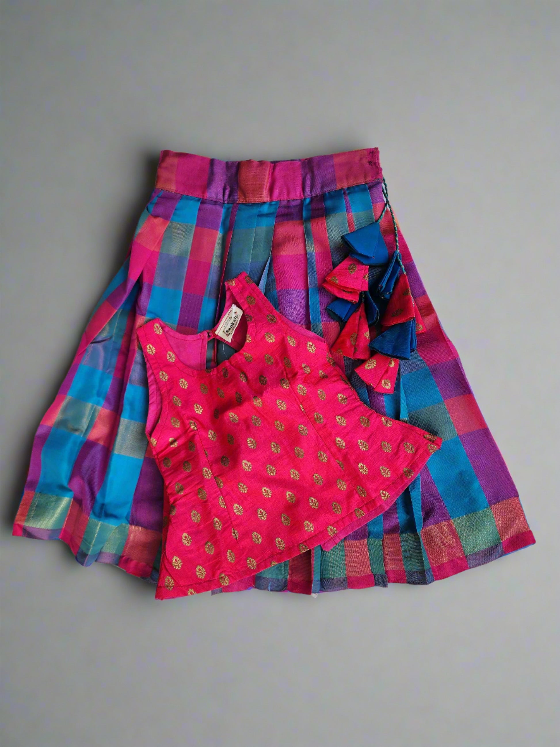 Strap on waist for Lehenga with side hooks, making it easy for kids to wear.
