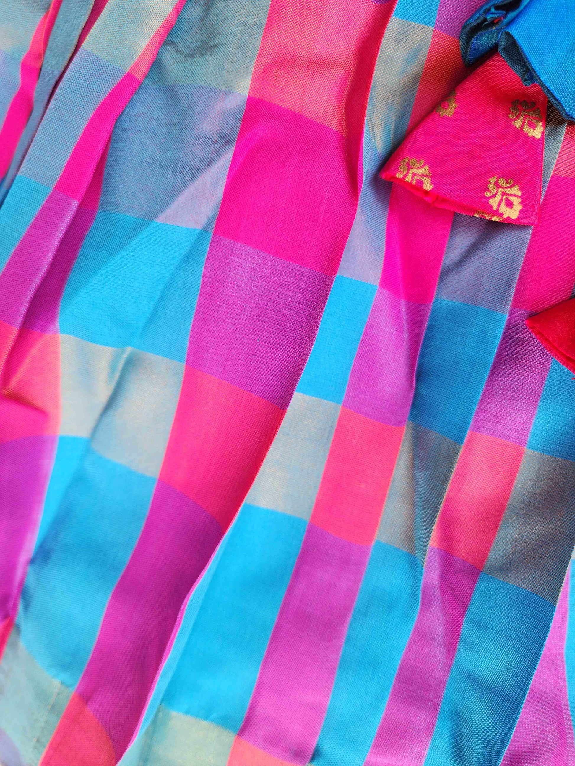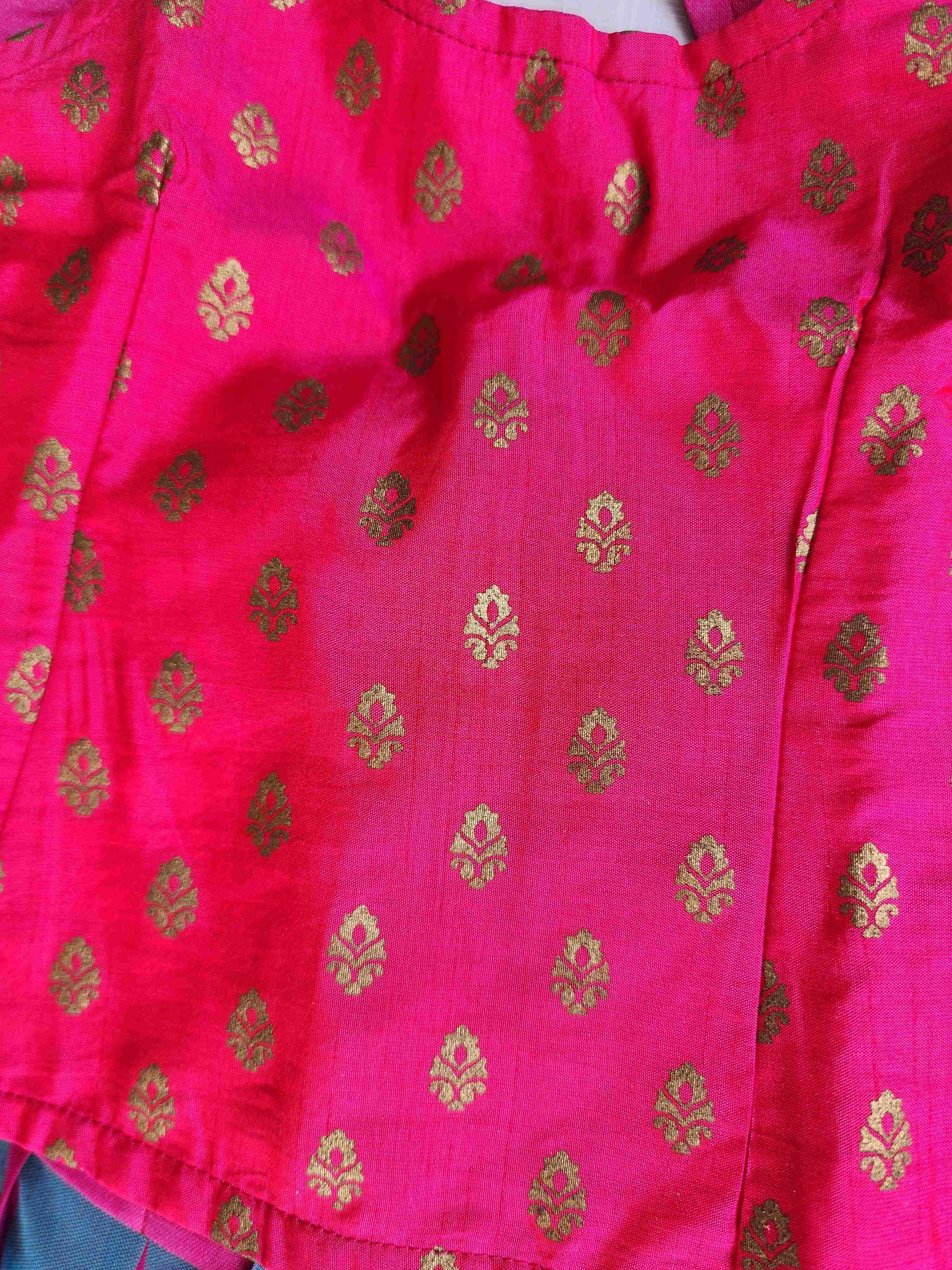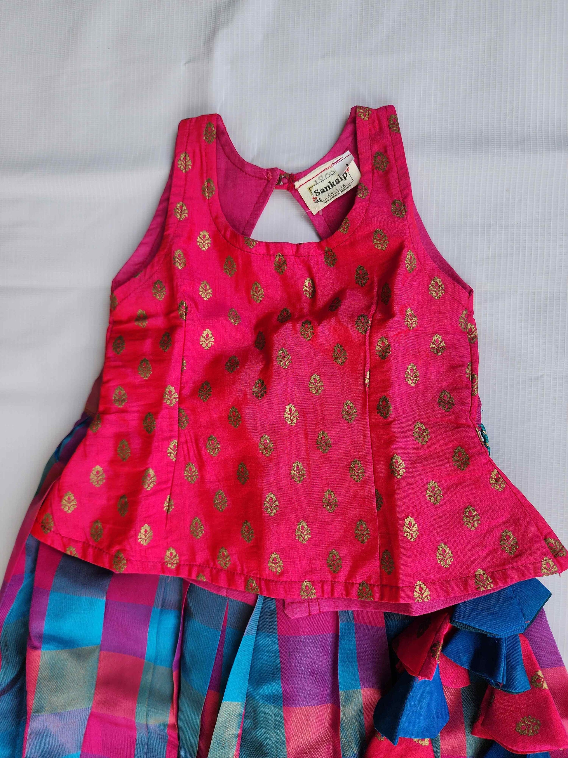 Strap on waist for Lehenga with side hooks, making it easy for kids to wear.