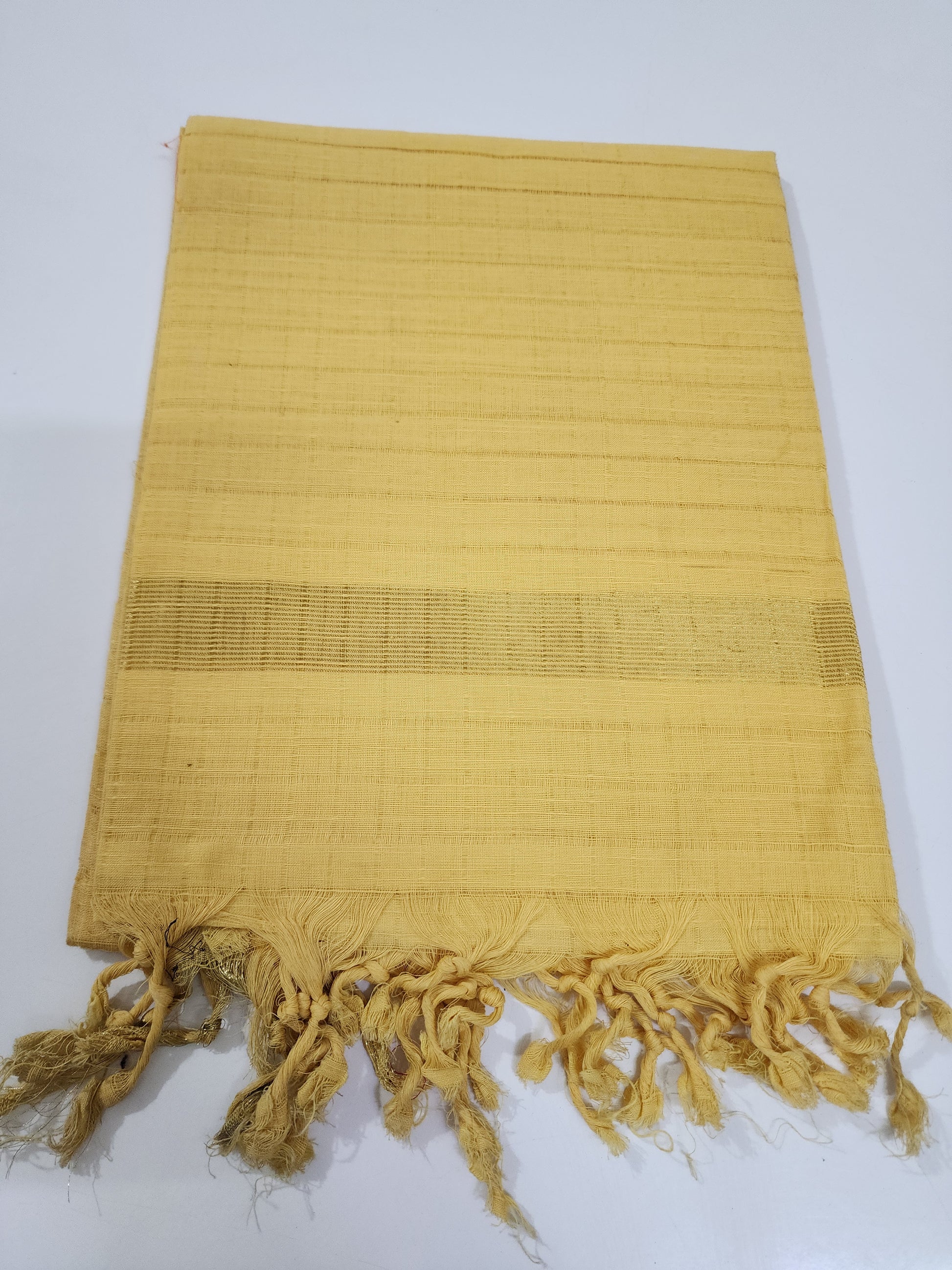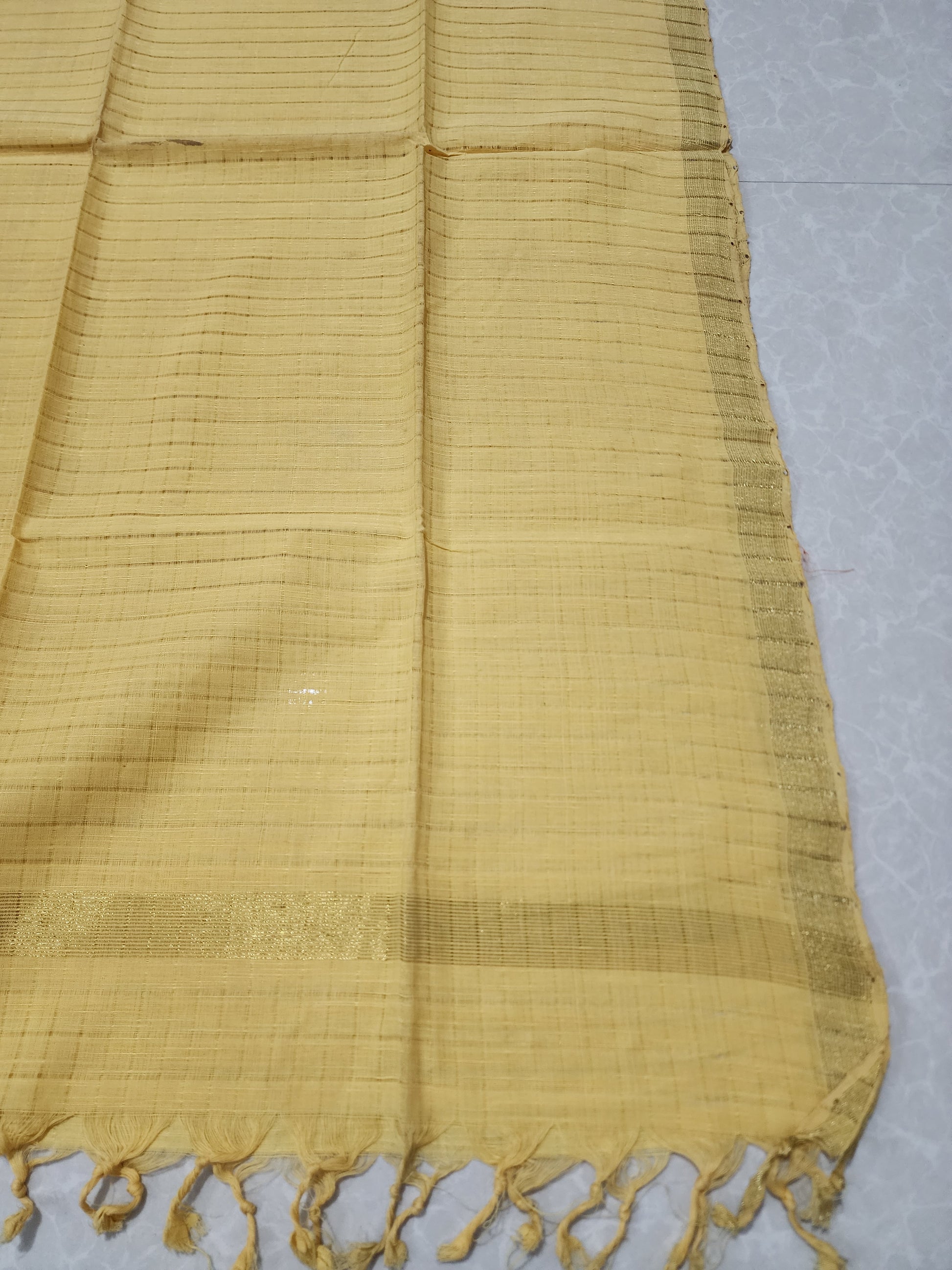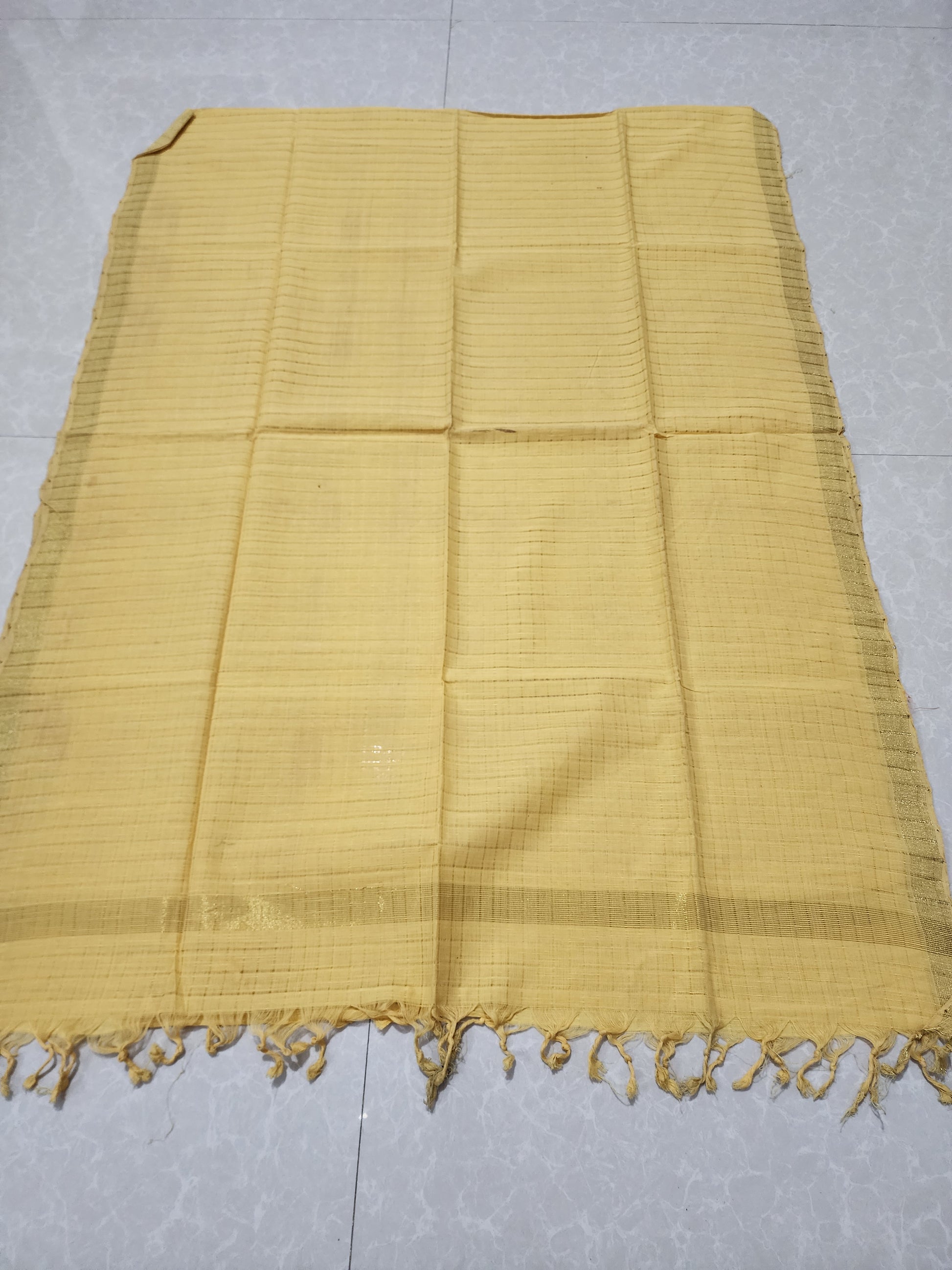 Mangalgiri Cotton Lemon Yellow color and Zari Border Dupatta