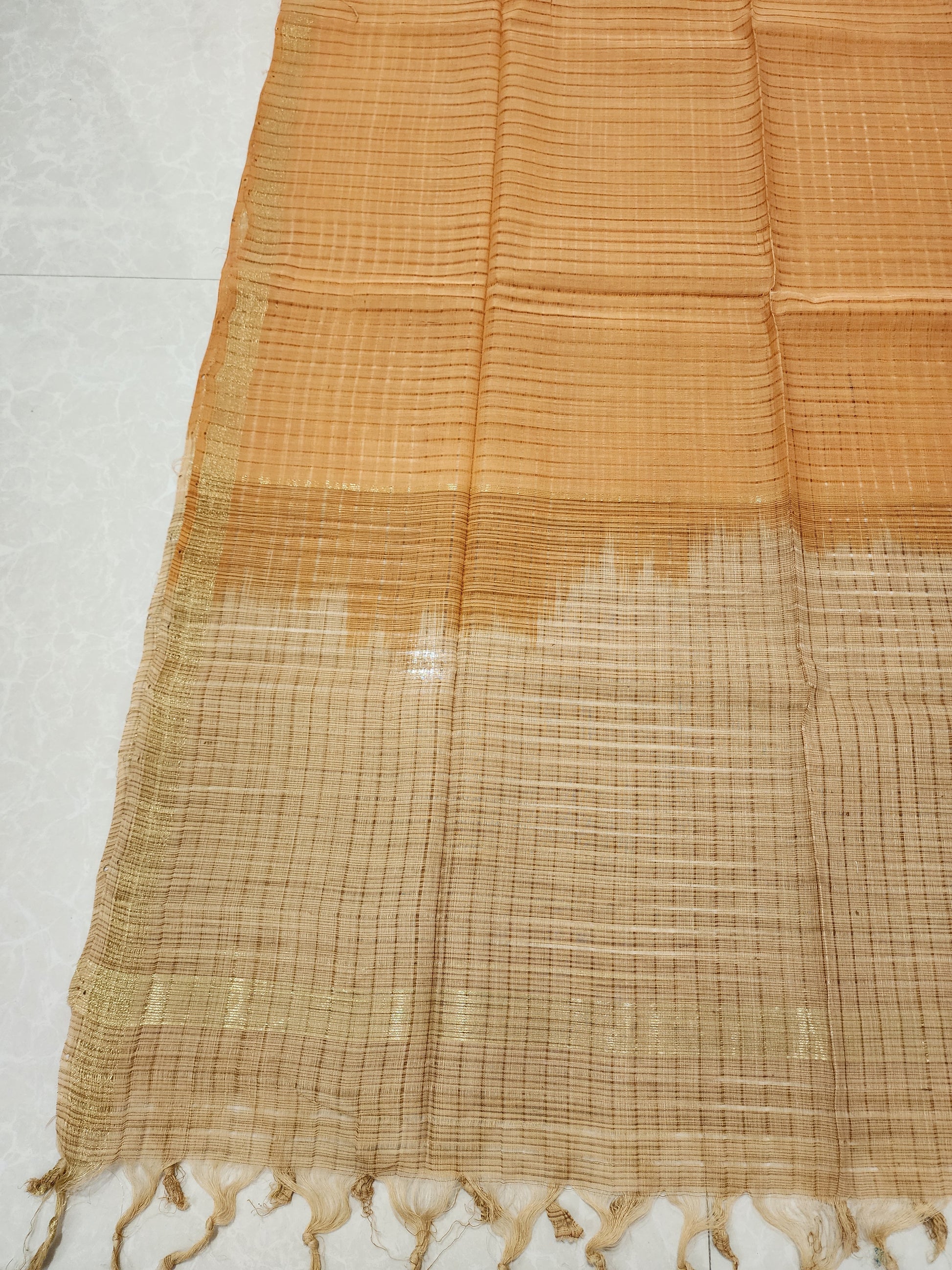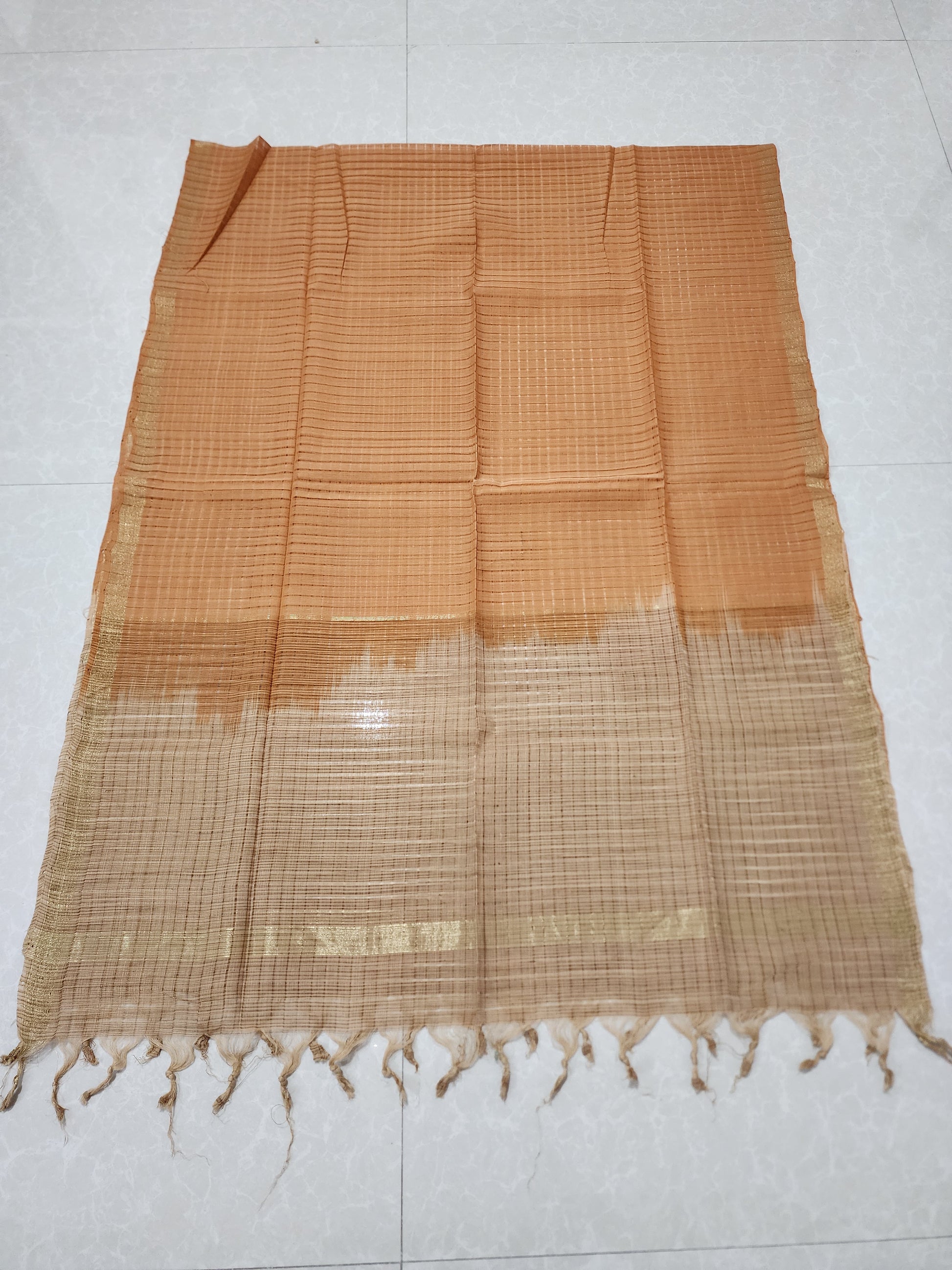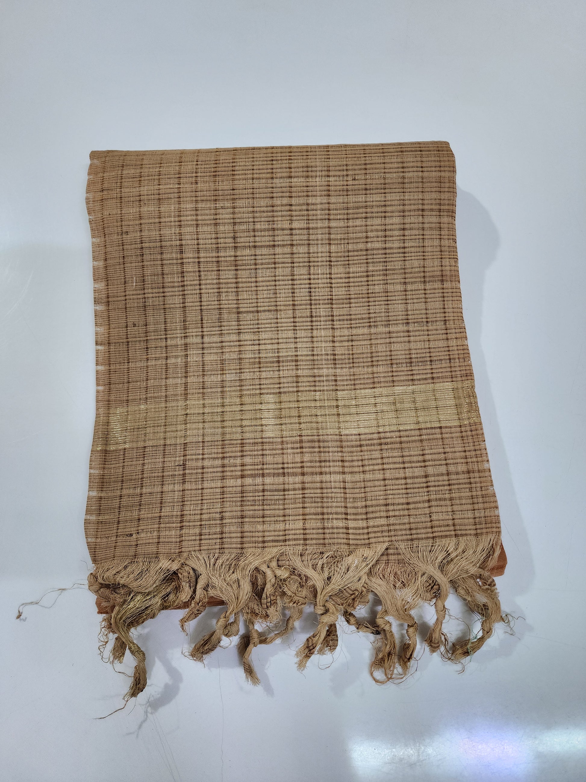 Mangalgiri Cotton Beige Chochlate and Zari Border Dupatta