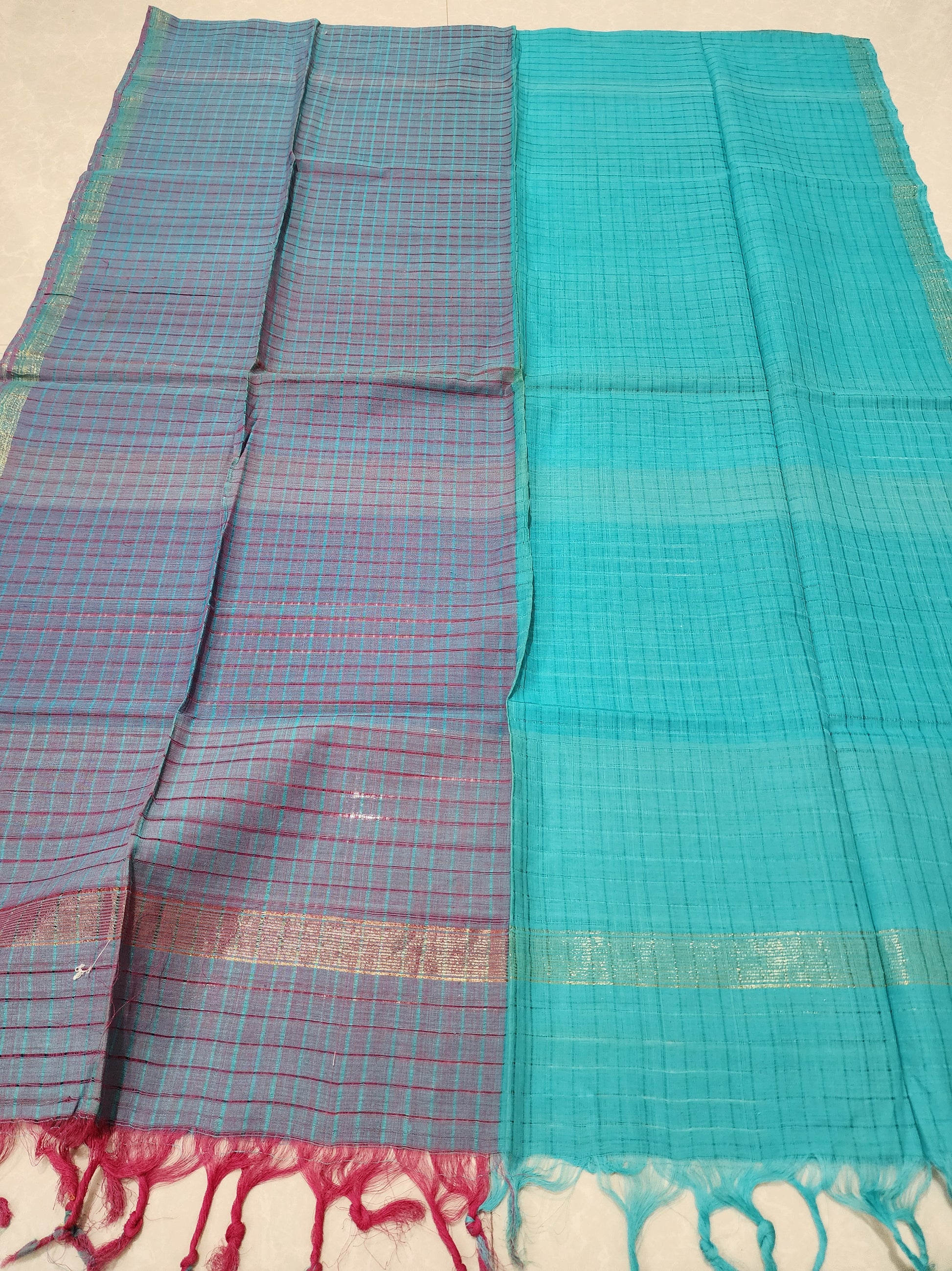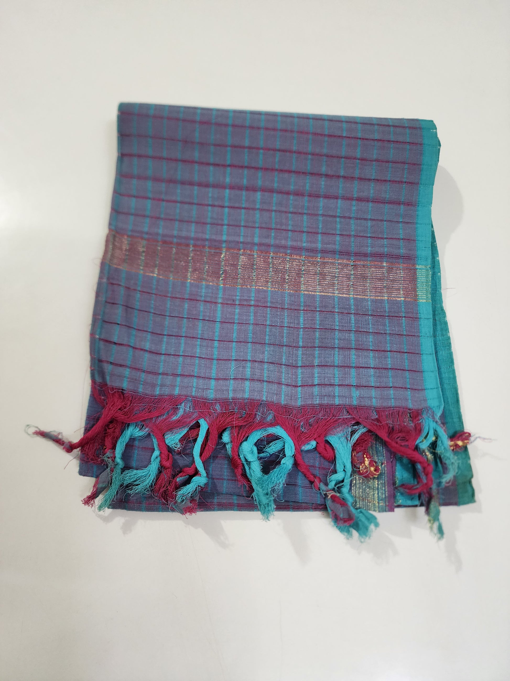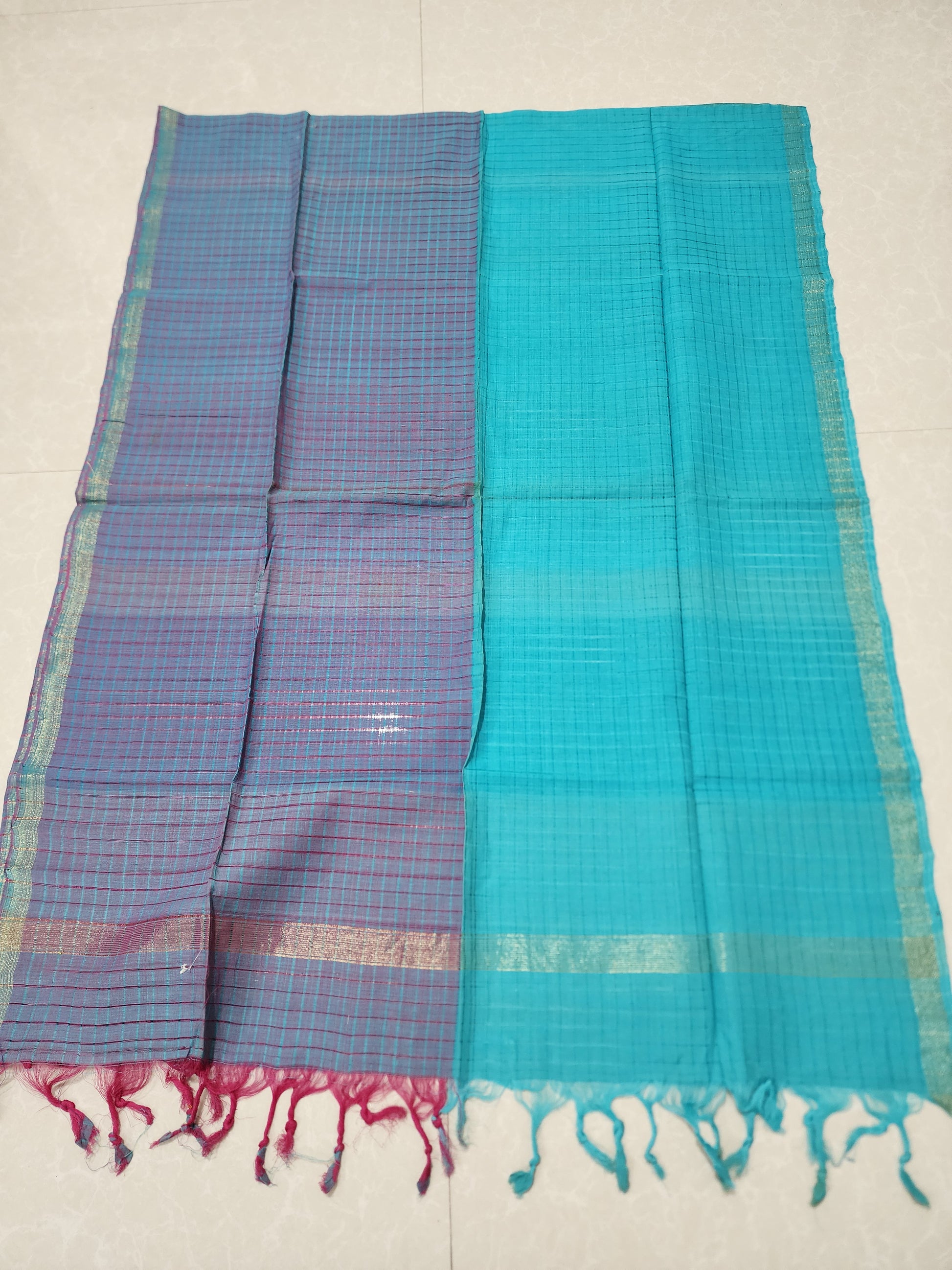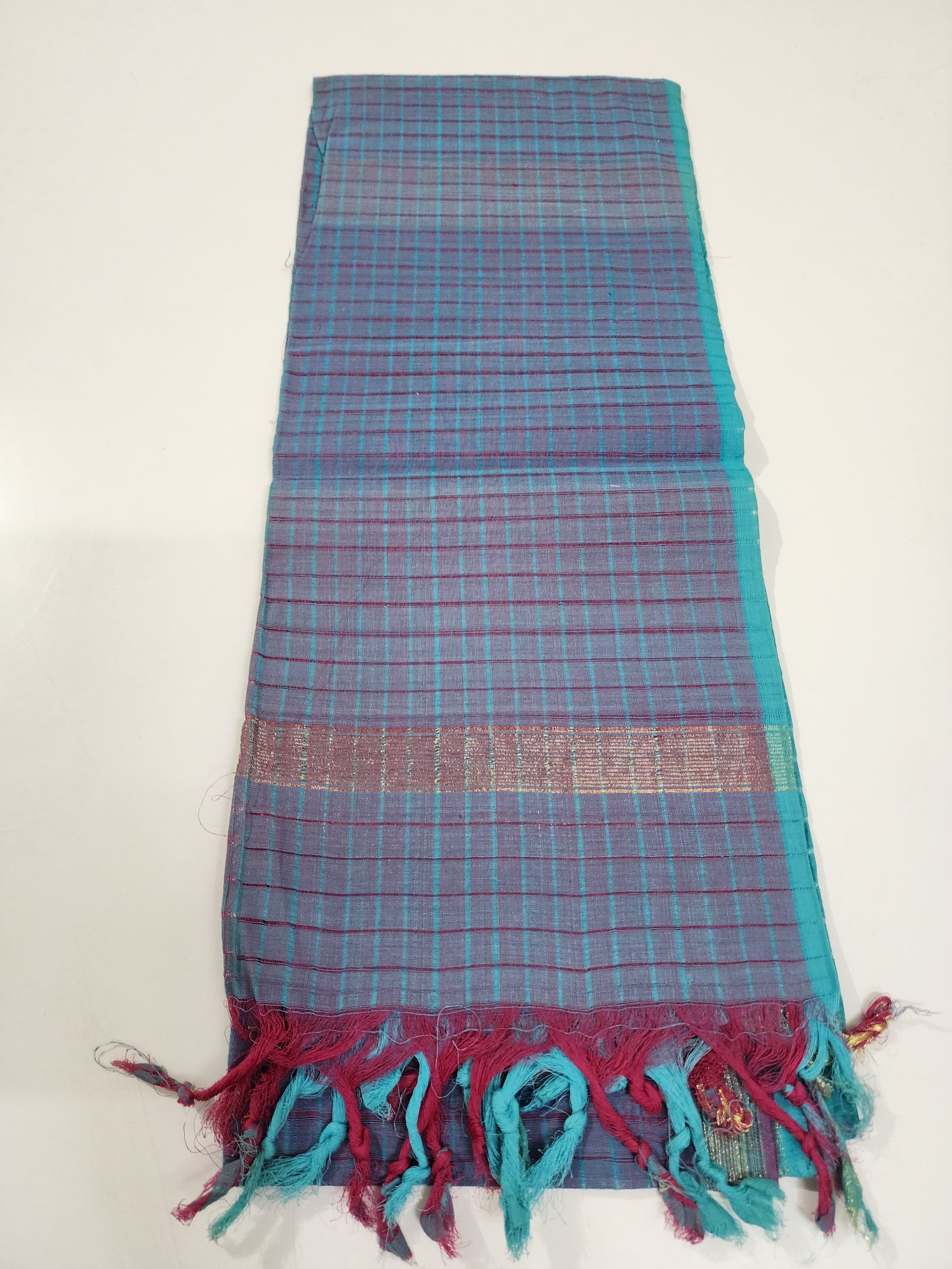 Handloom light and dark blue checks Dupatta