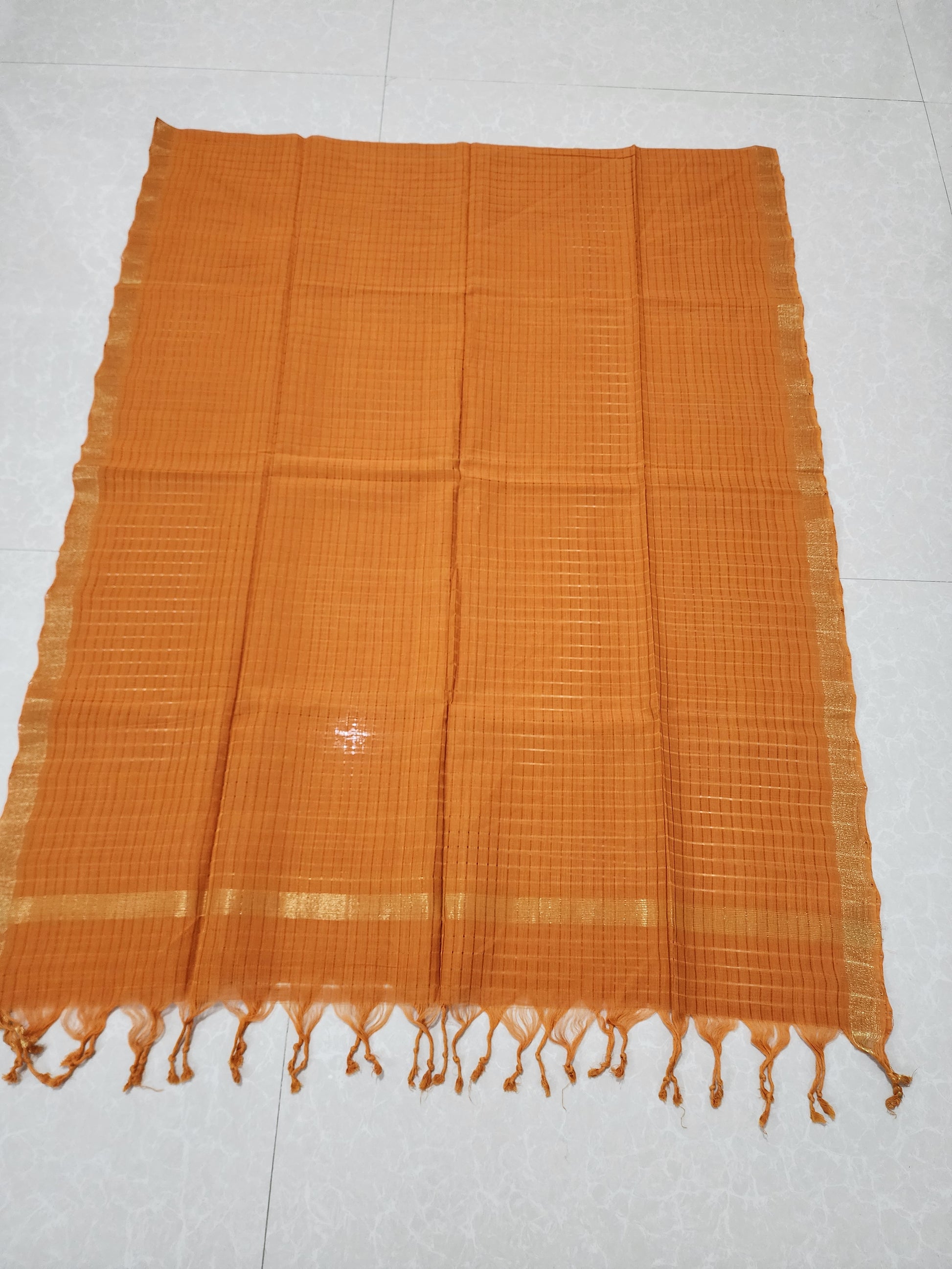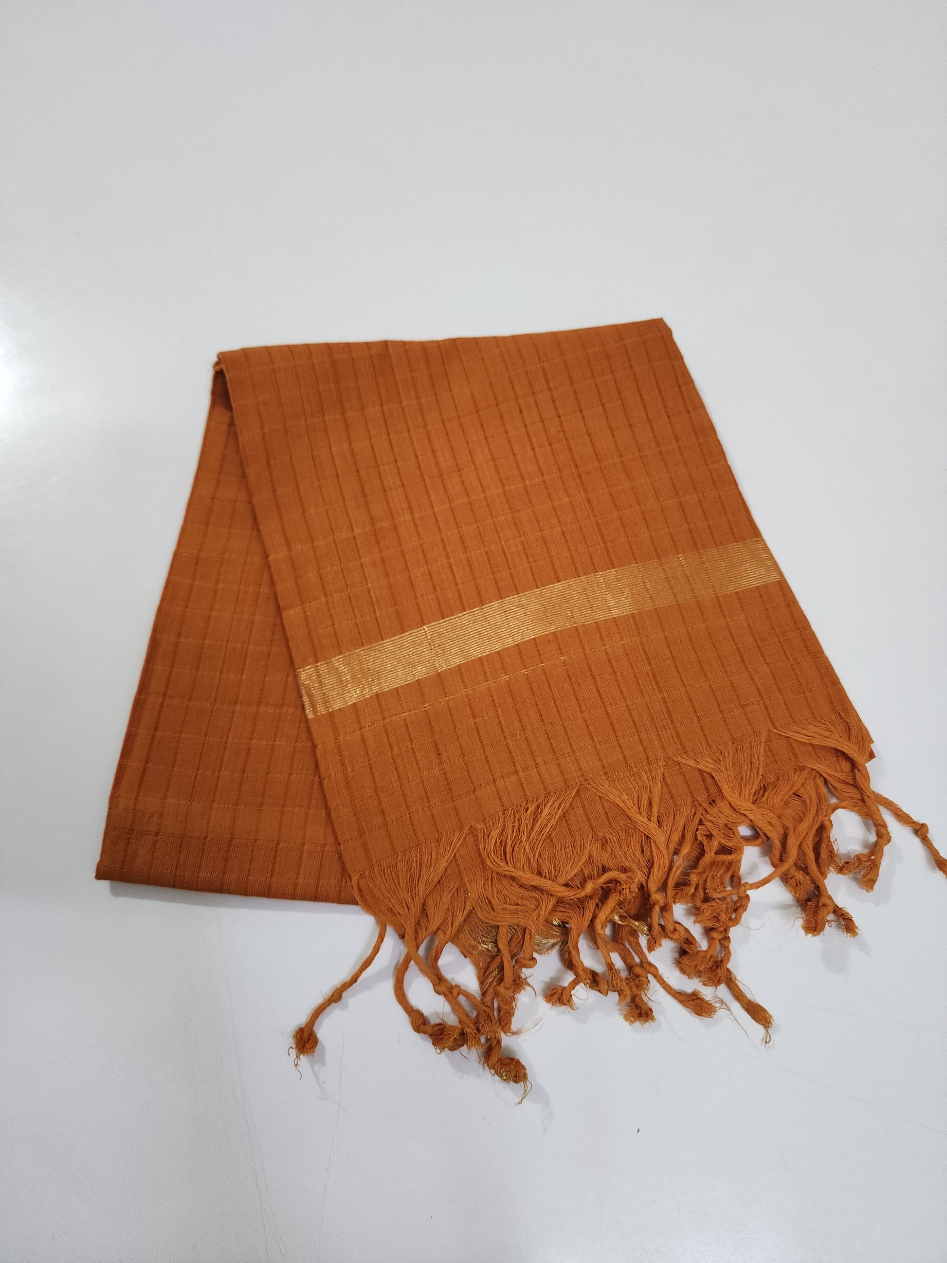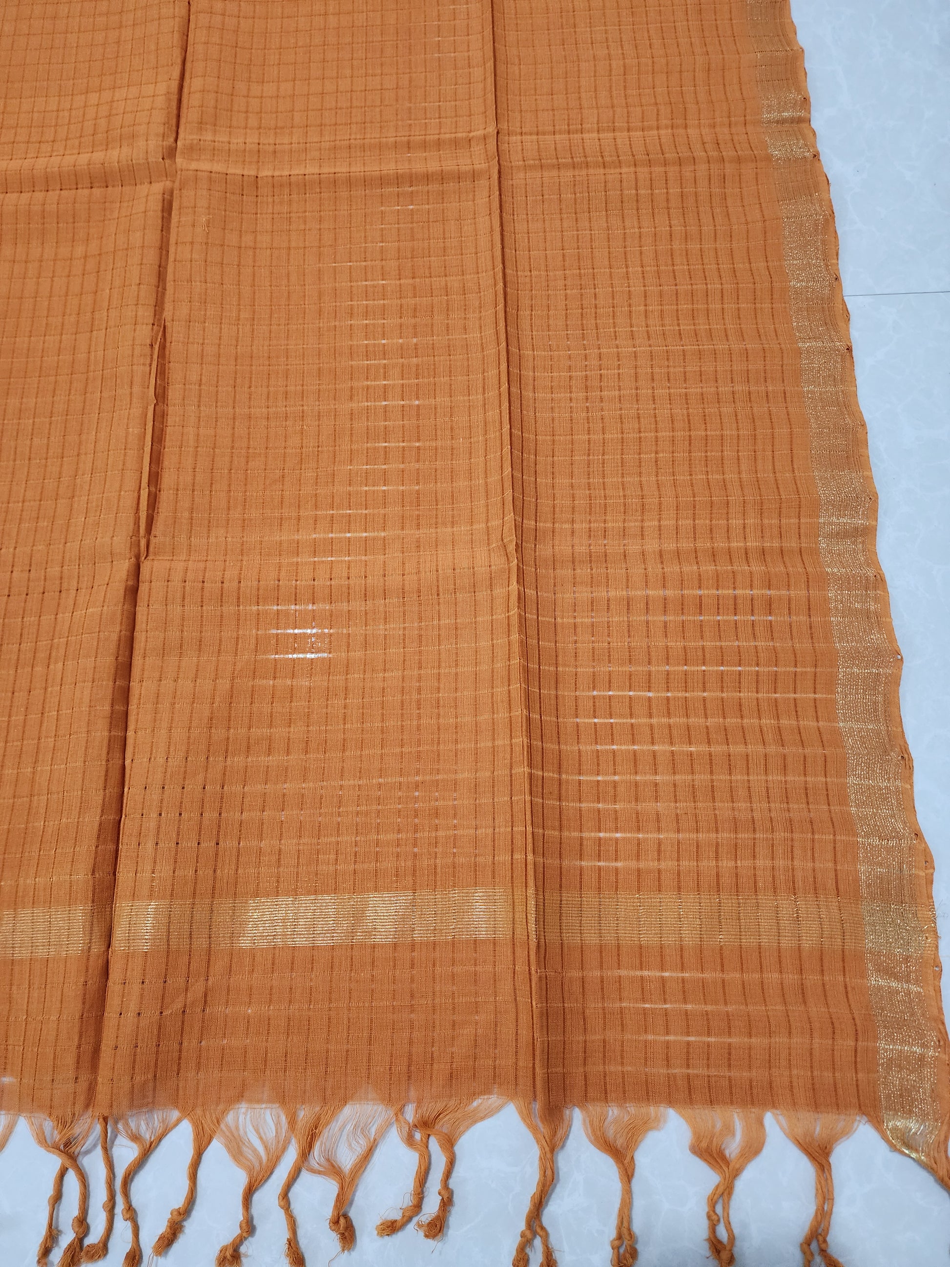 Mangalgiri Cotton Brick Red and Zari Border Dupatta