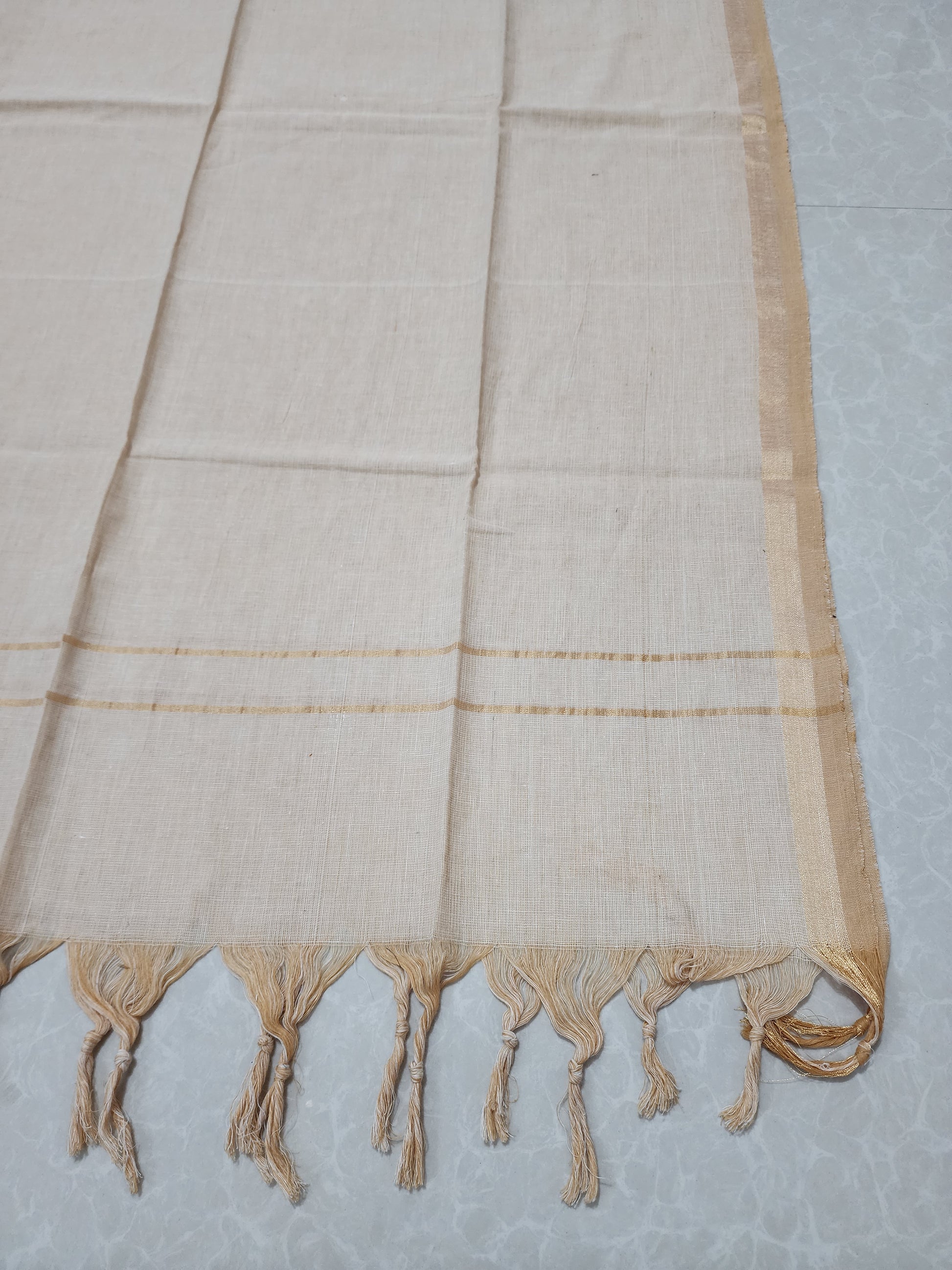 Mangalgiri Cotton white with Gold Zari Dupatta