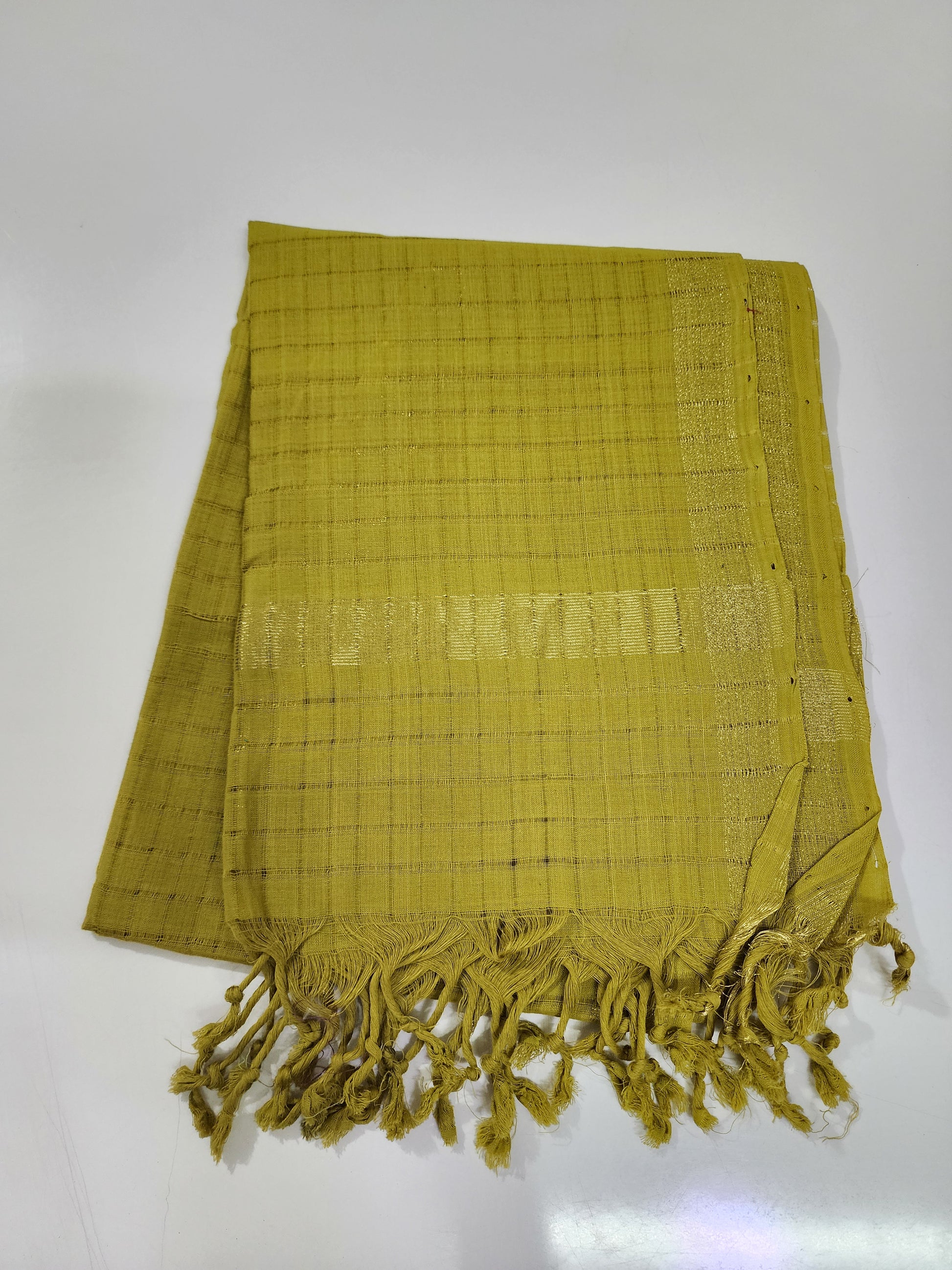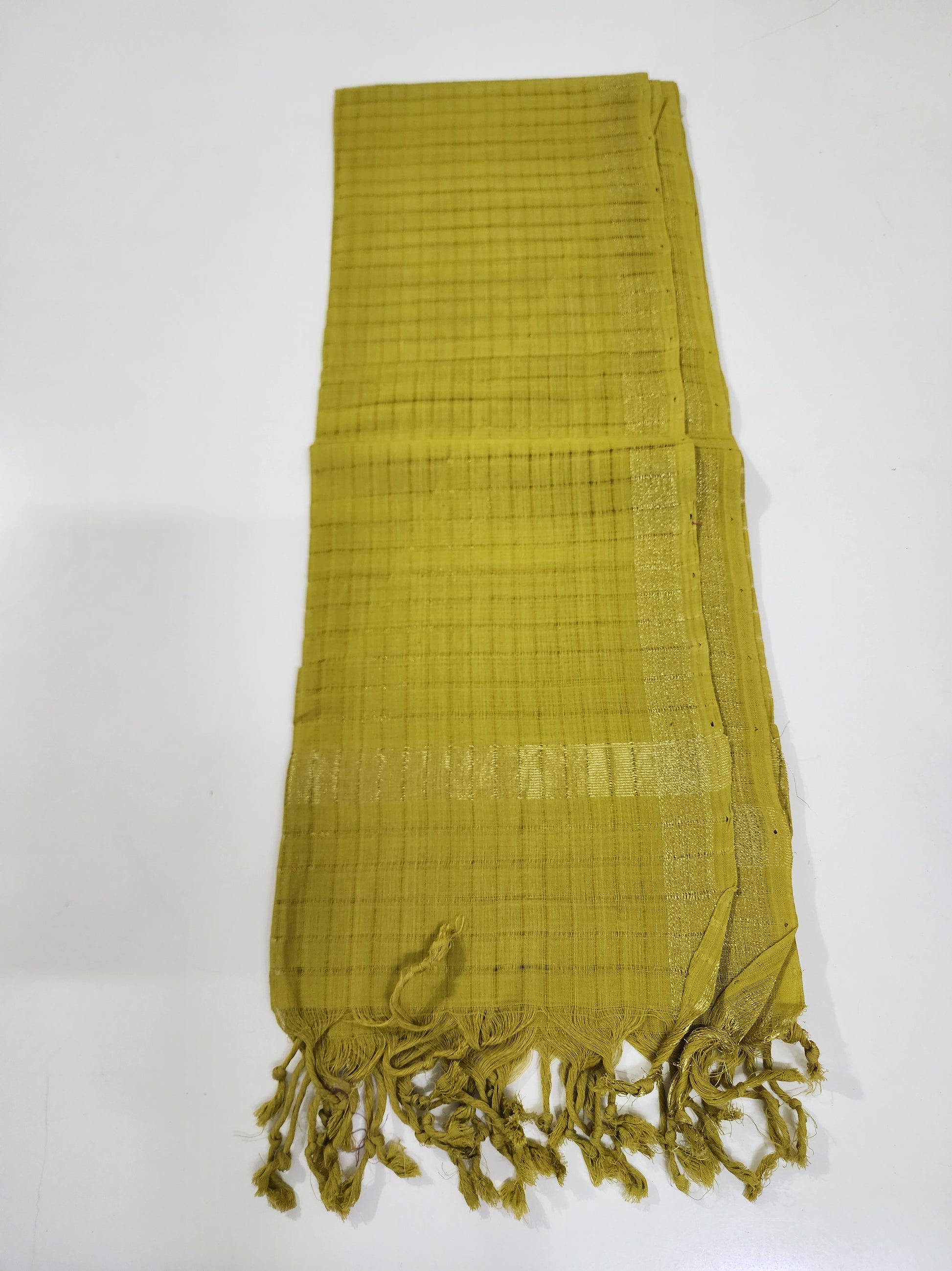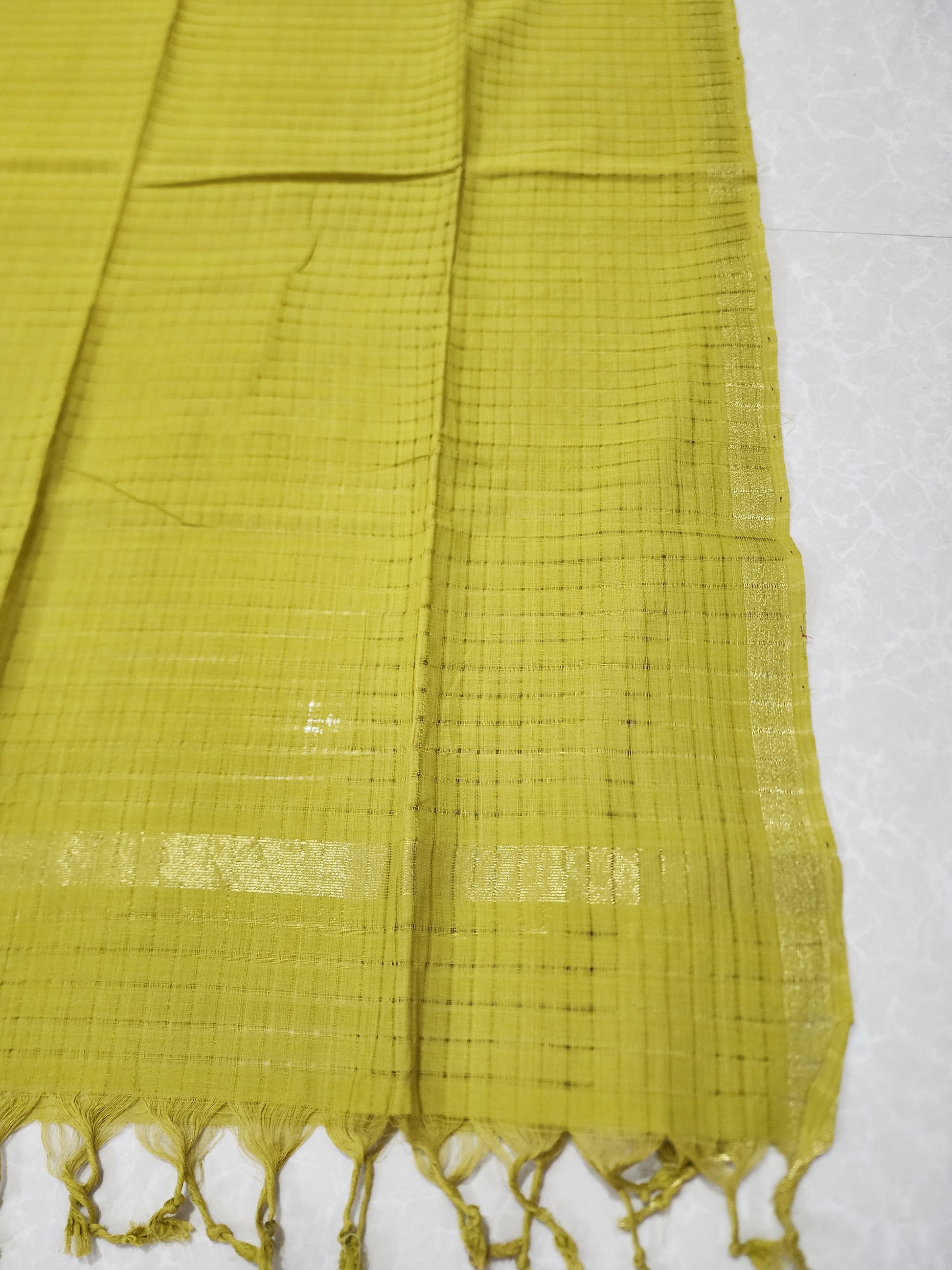 Mangalgiri Cotton Greengram Green and checks patterned Dupatta