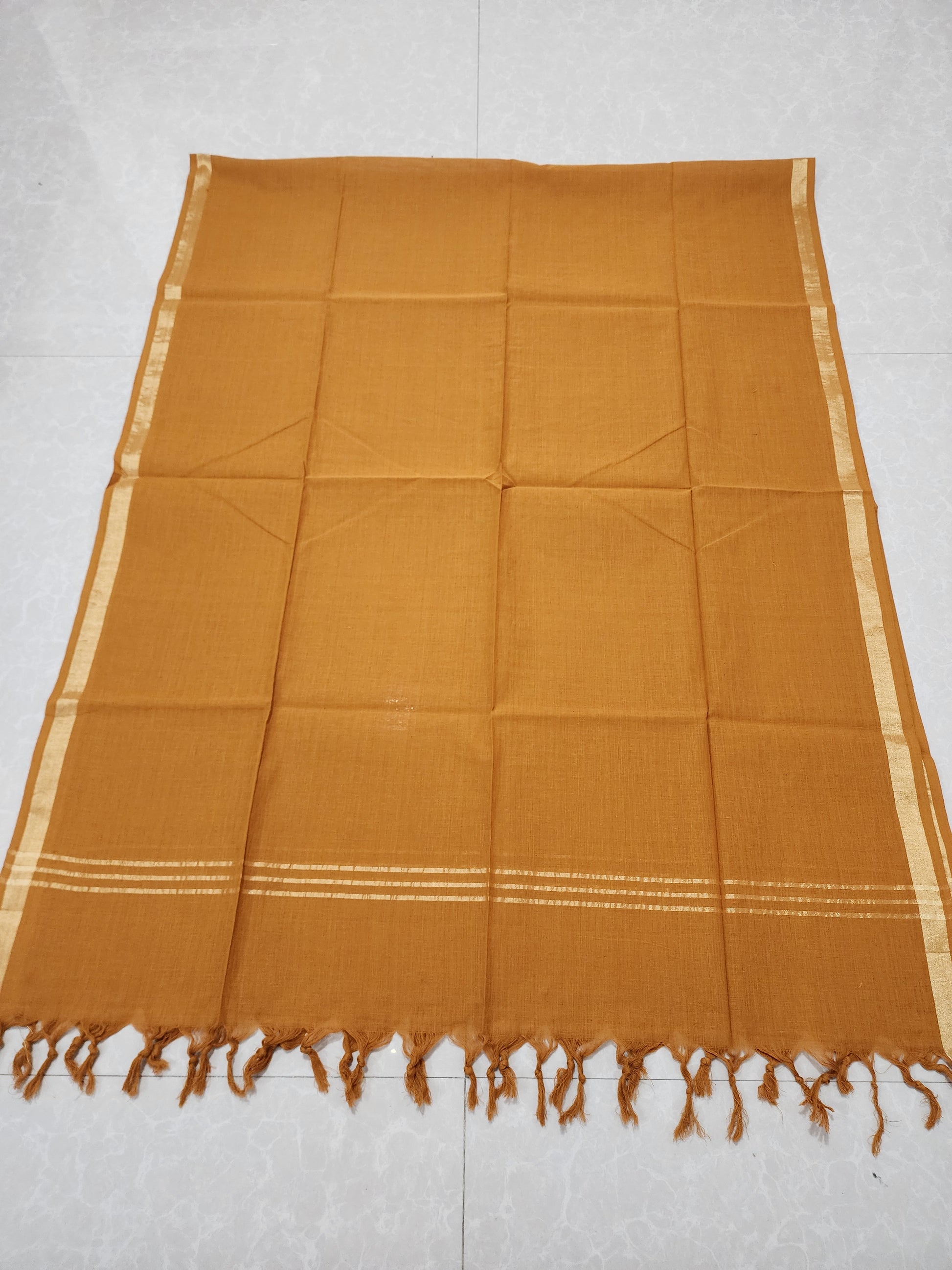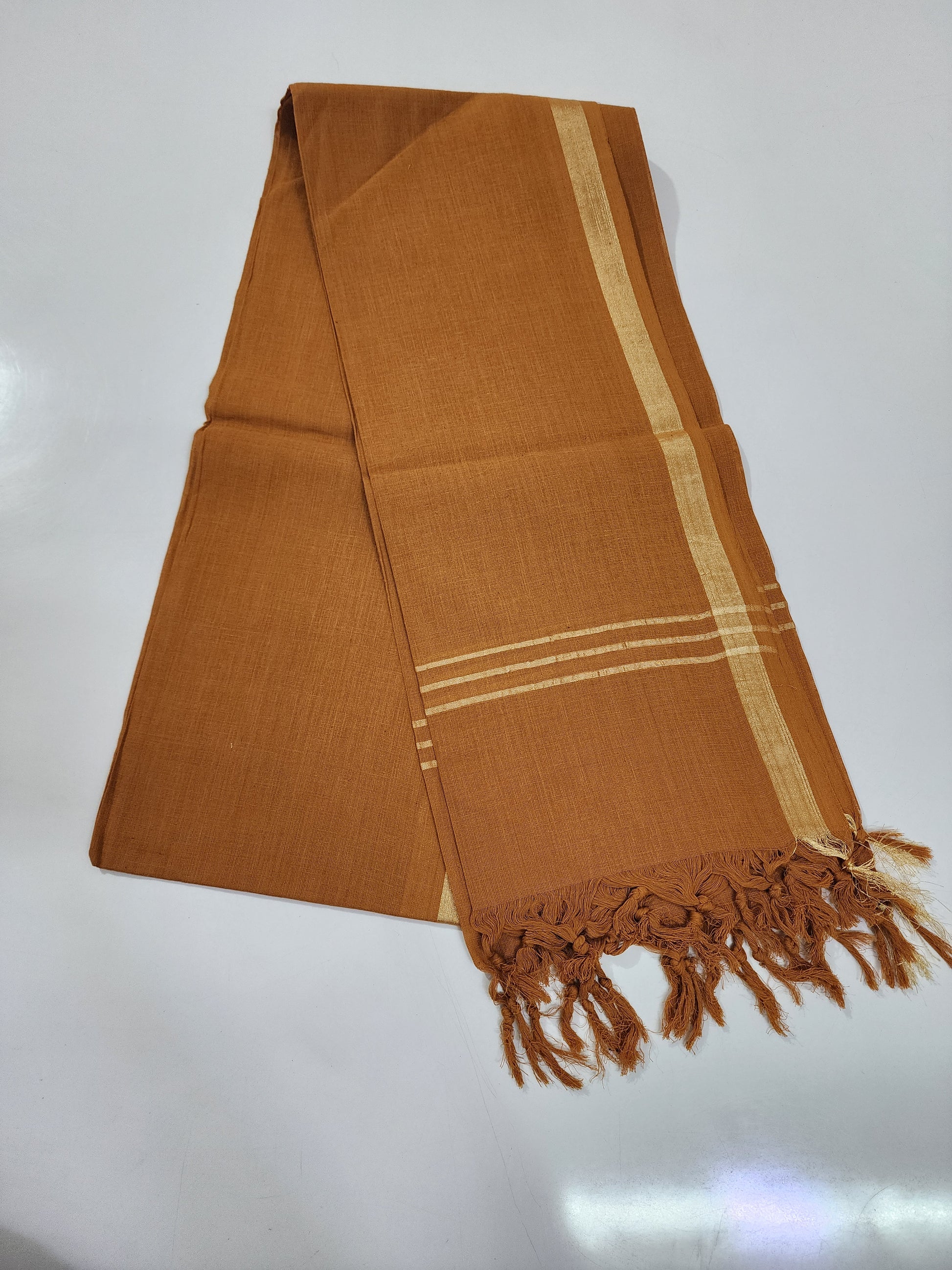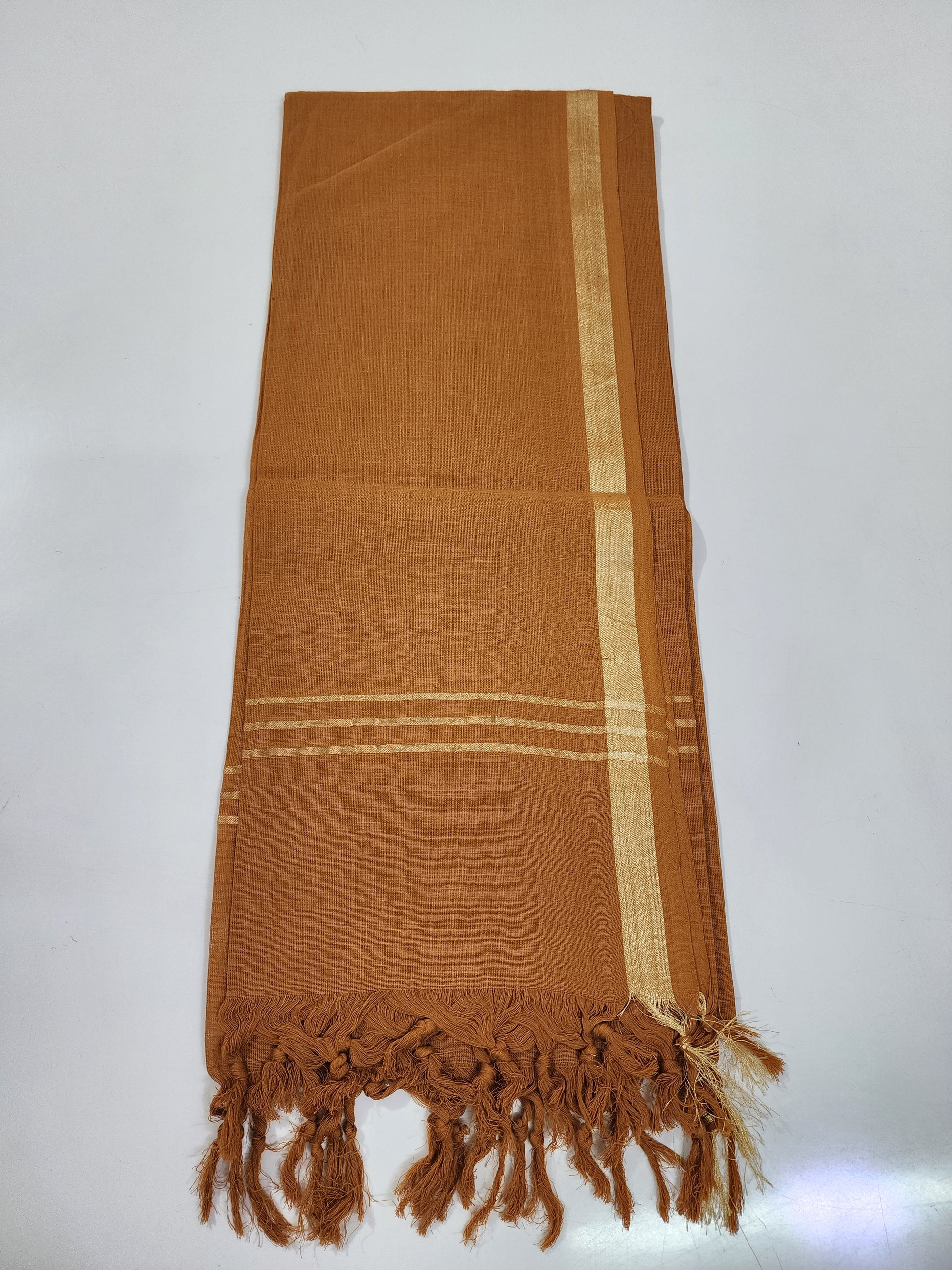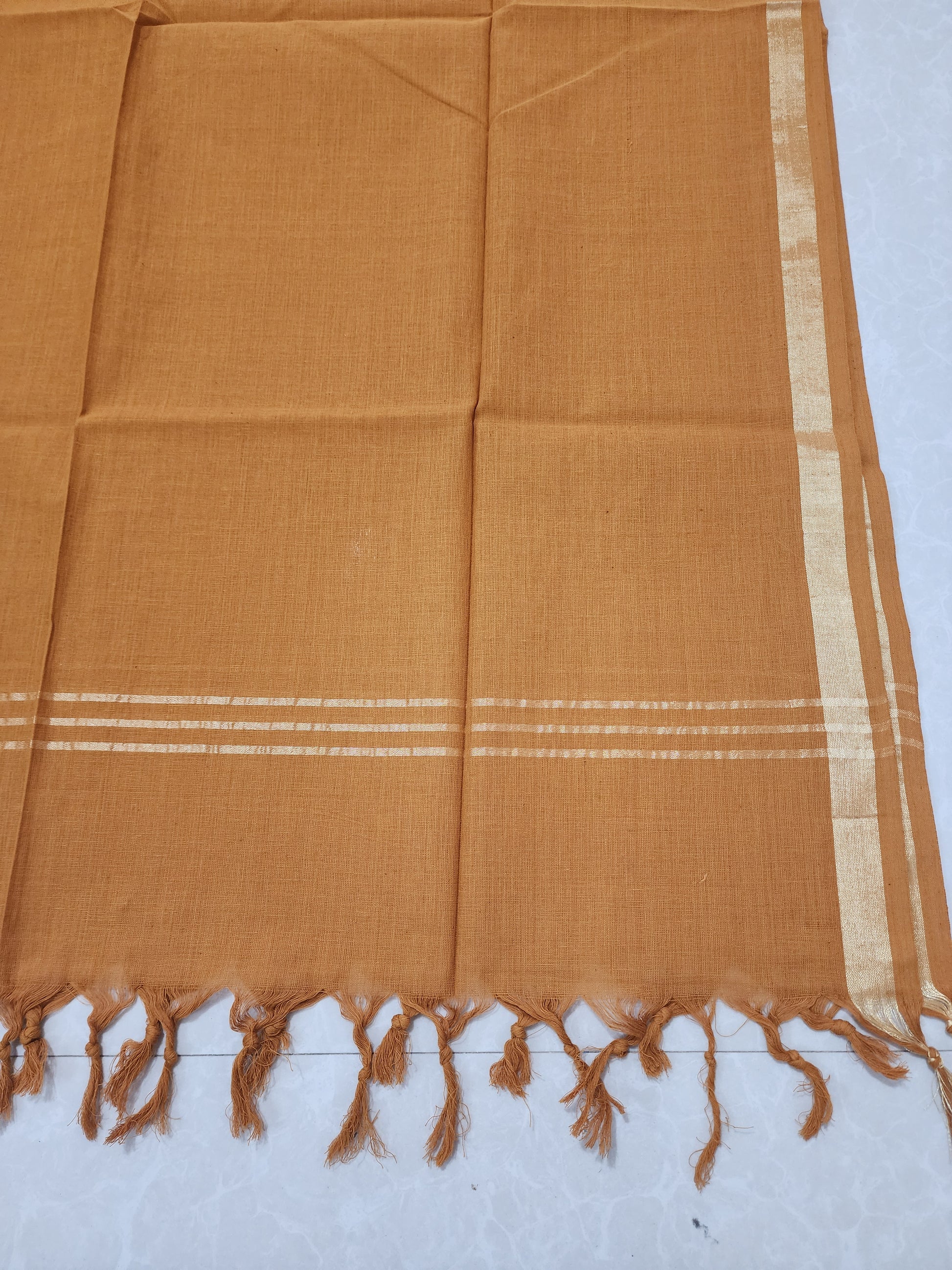 Mangalgiri Cotton Brown with Gold Zari Dupatta