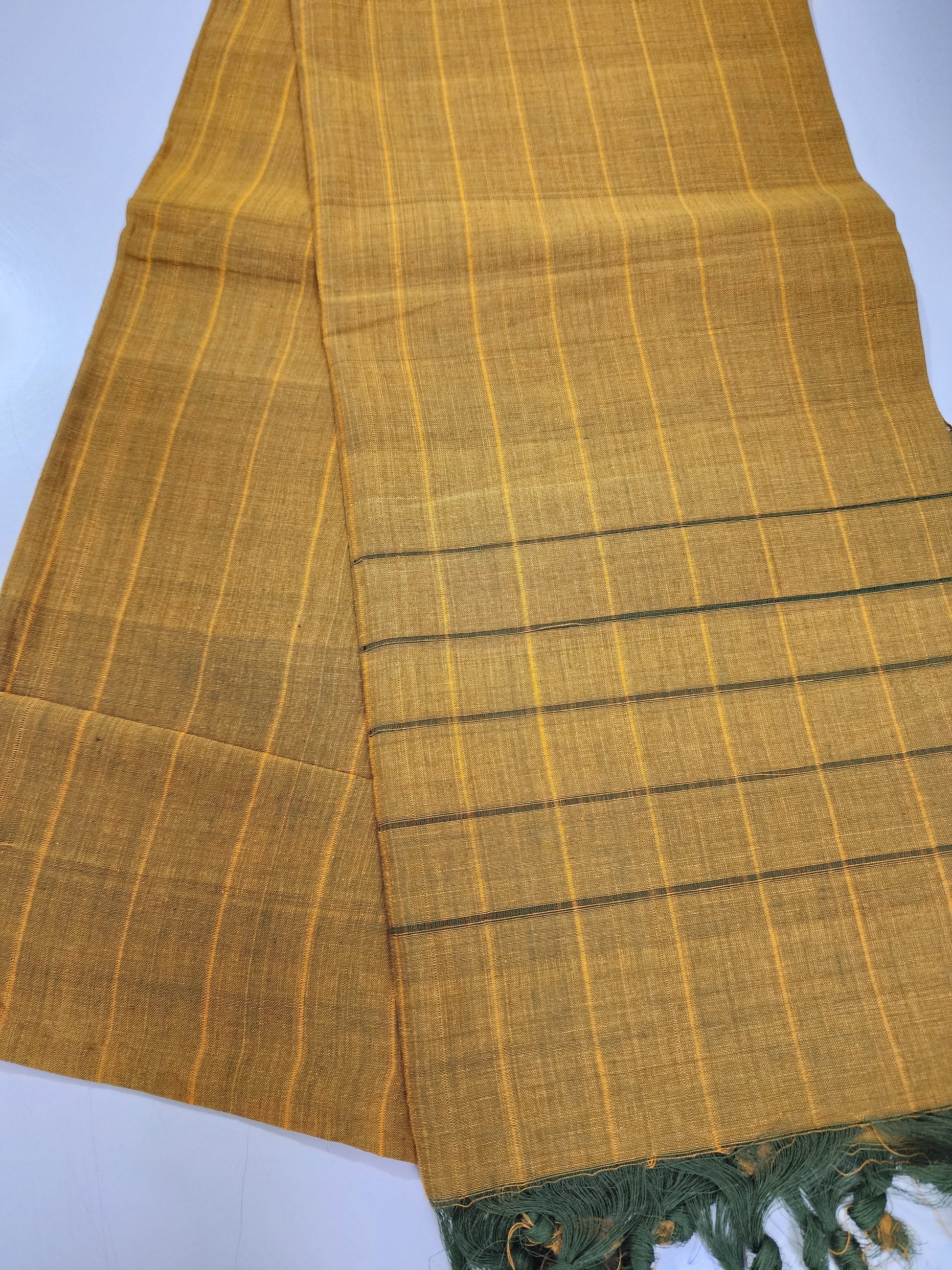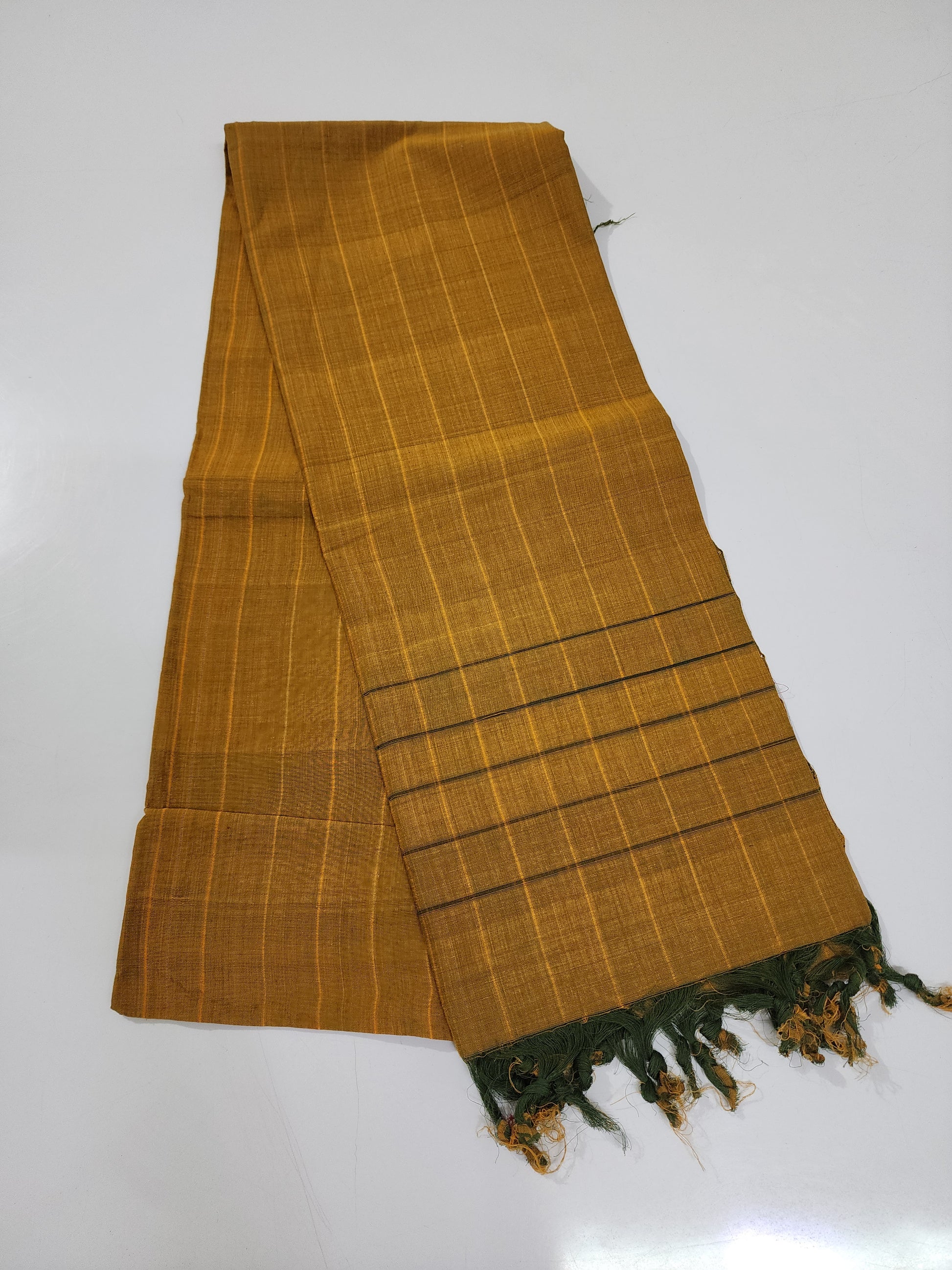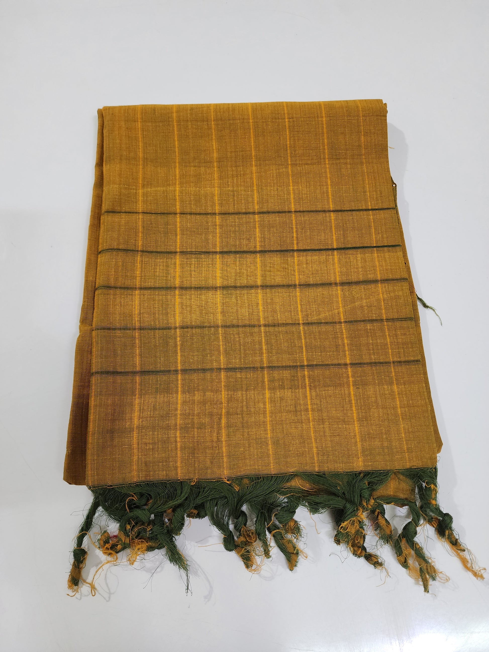 Mangalgiri Cotton Gold and Checks Pattern Dupatta