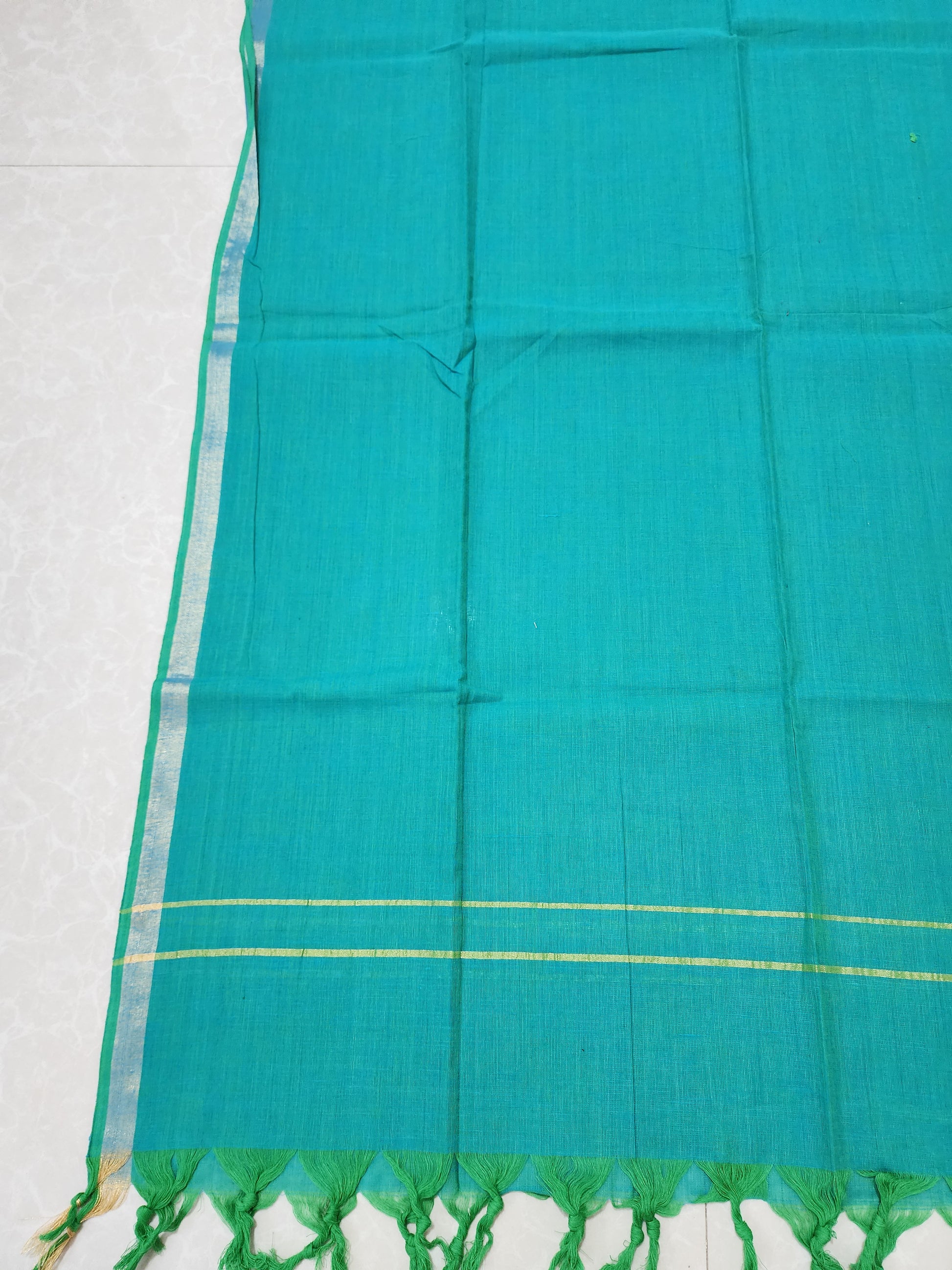 Mangalgiri Cotton Sea Green and Blue Color Dupatta