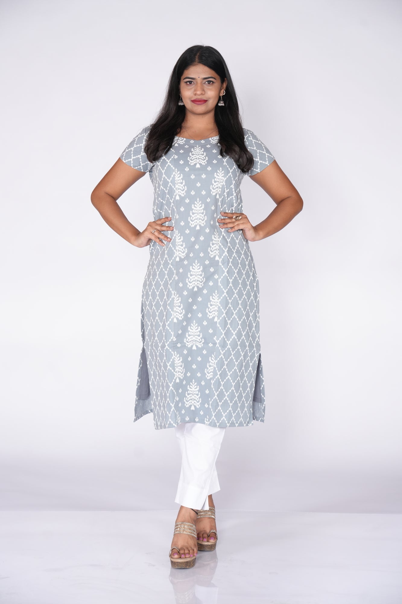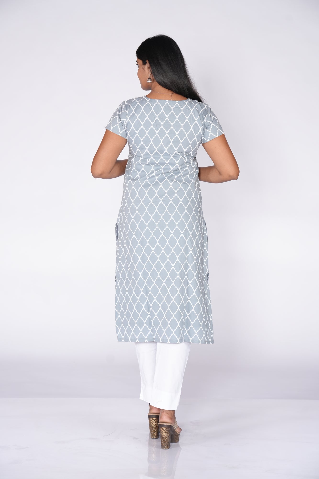 Grey kurti with white pattern print