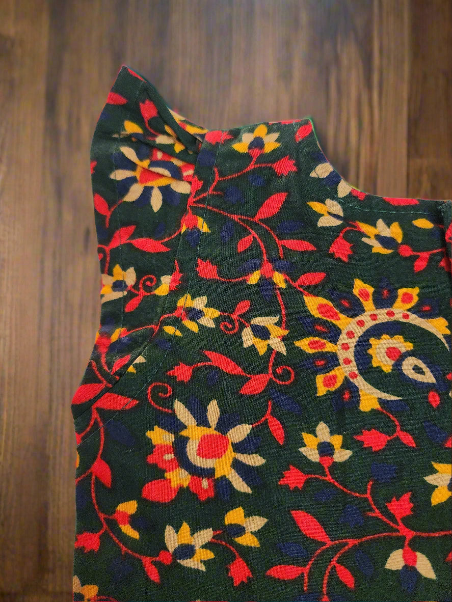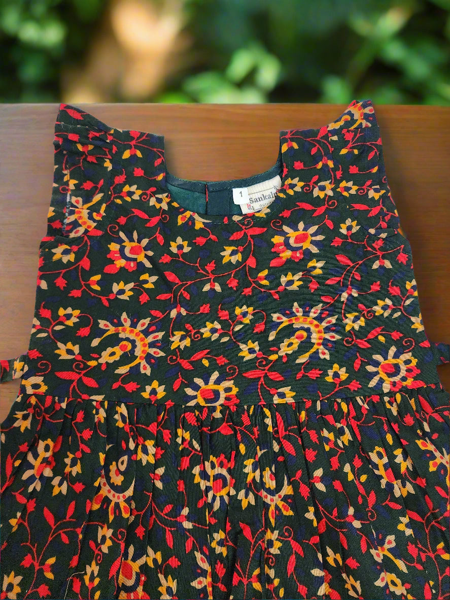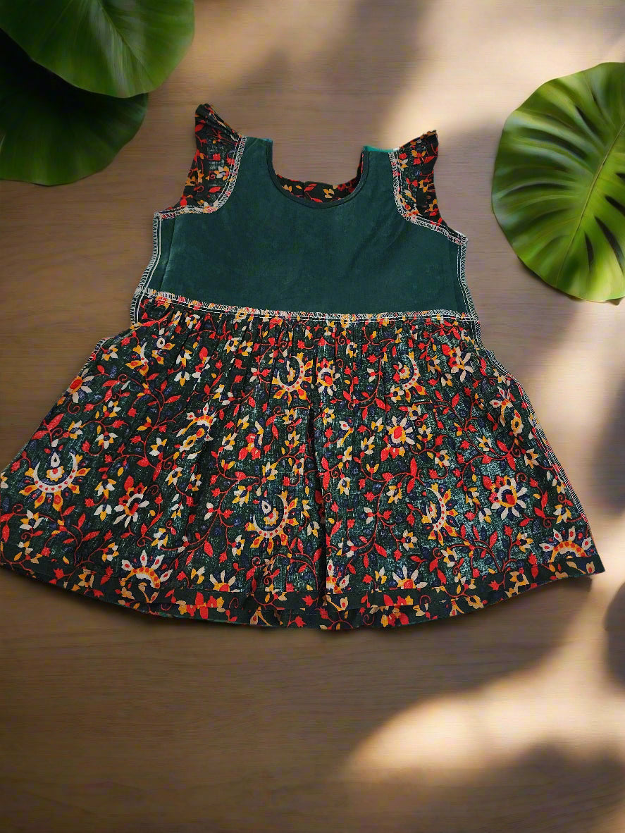Deep Green Floral Cotton Frock