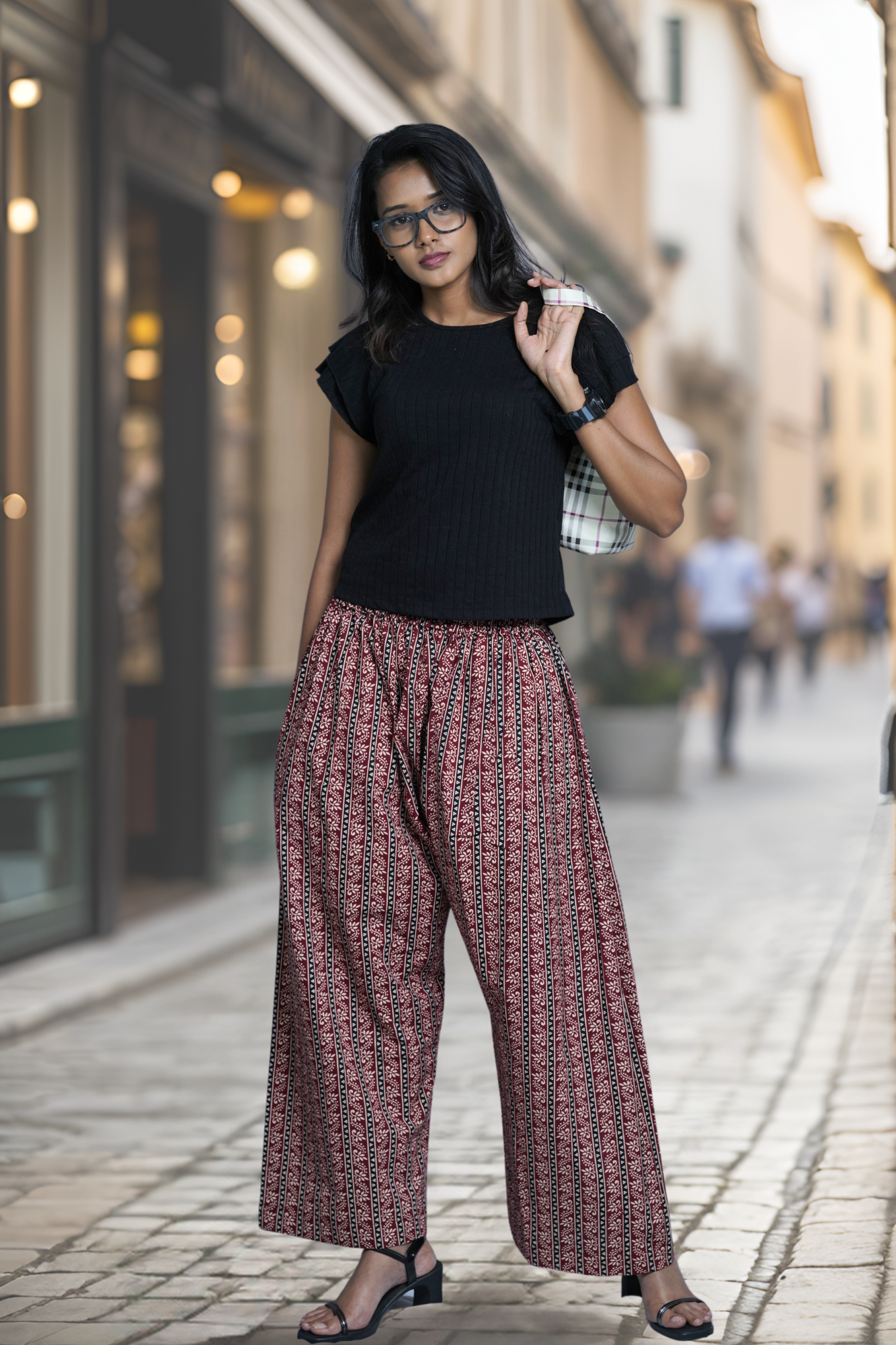 Comfortable and breathable, with soft elastic, cotton palazzos provide effortless style and Comfort, pair perfectly with a variety of tops.