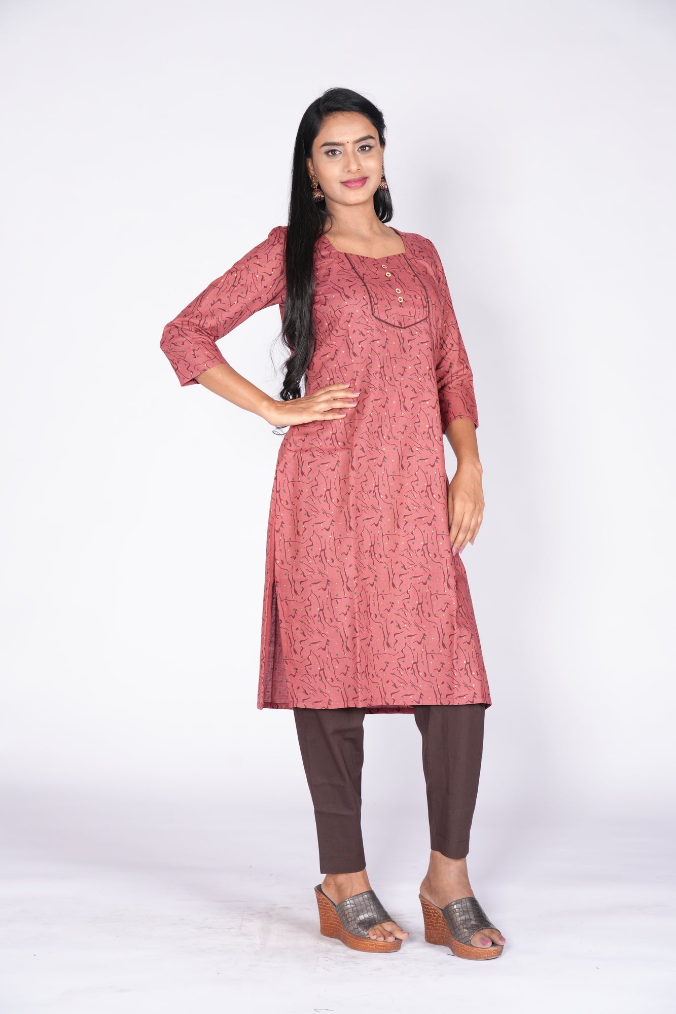 - Knee-length Maroon Design Kurti for everyday elegance.