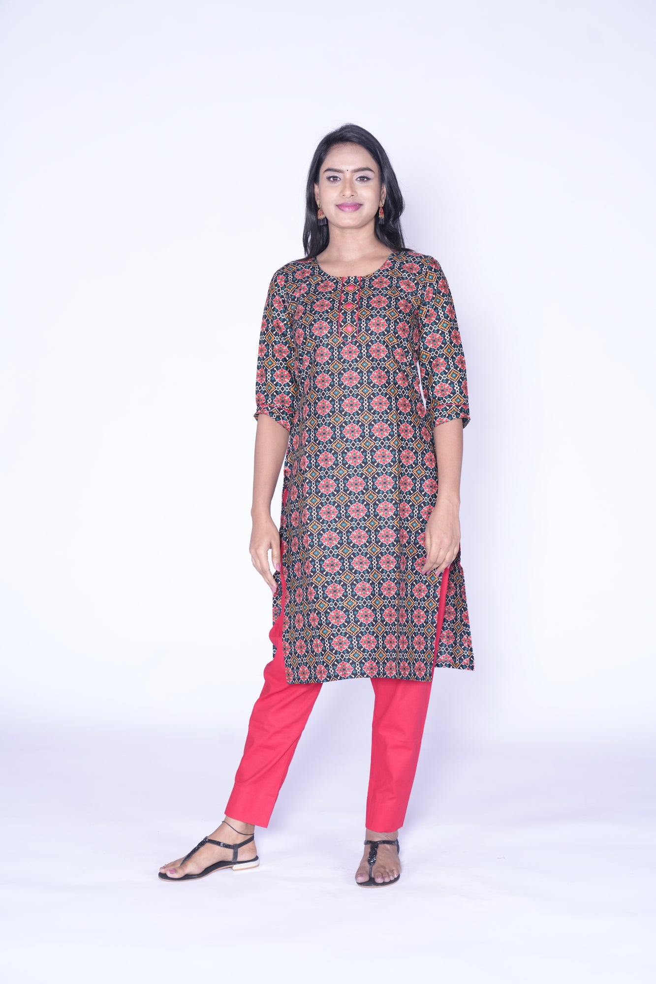 Description of Black and Red Combination Kurti: