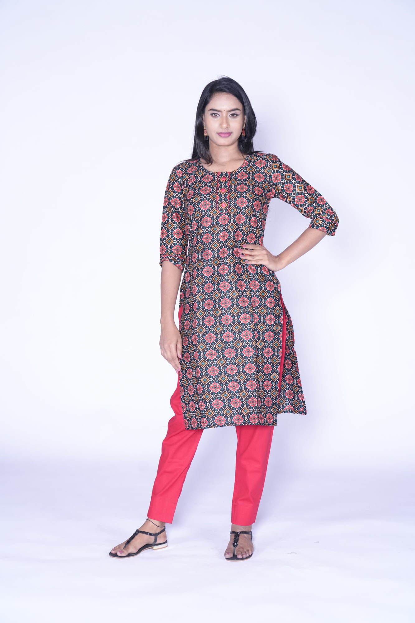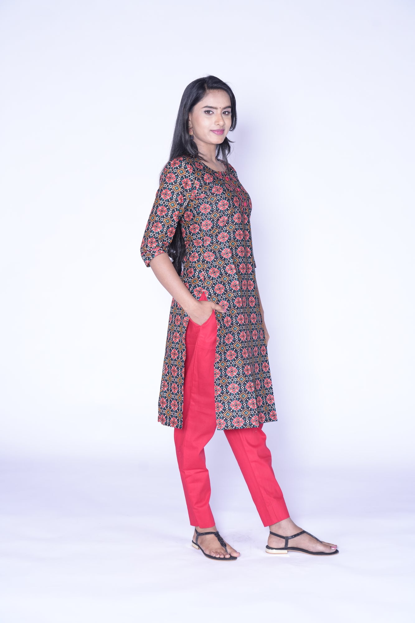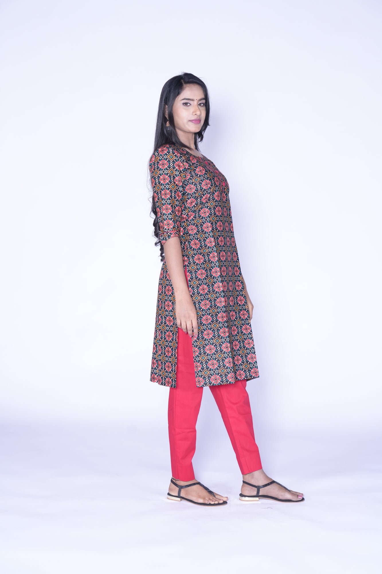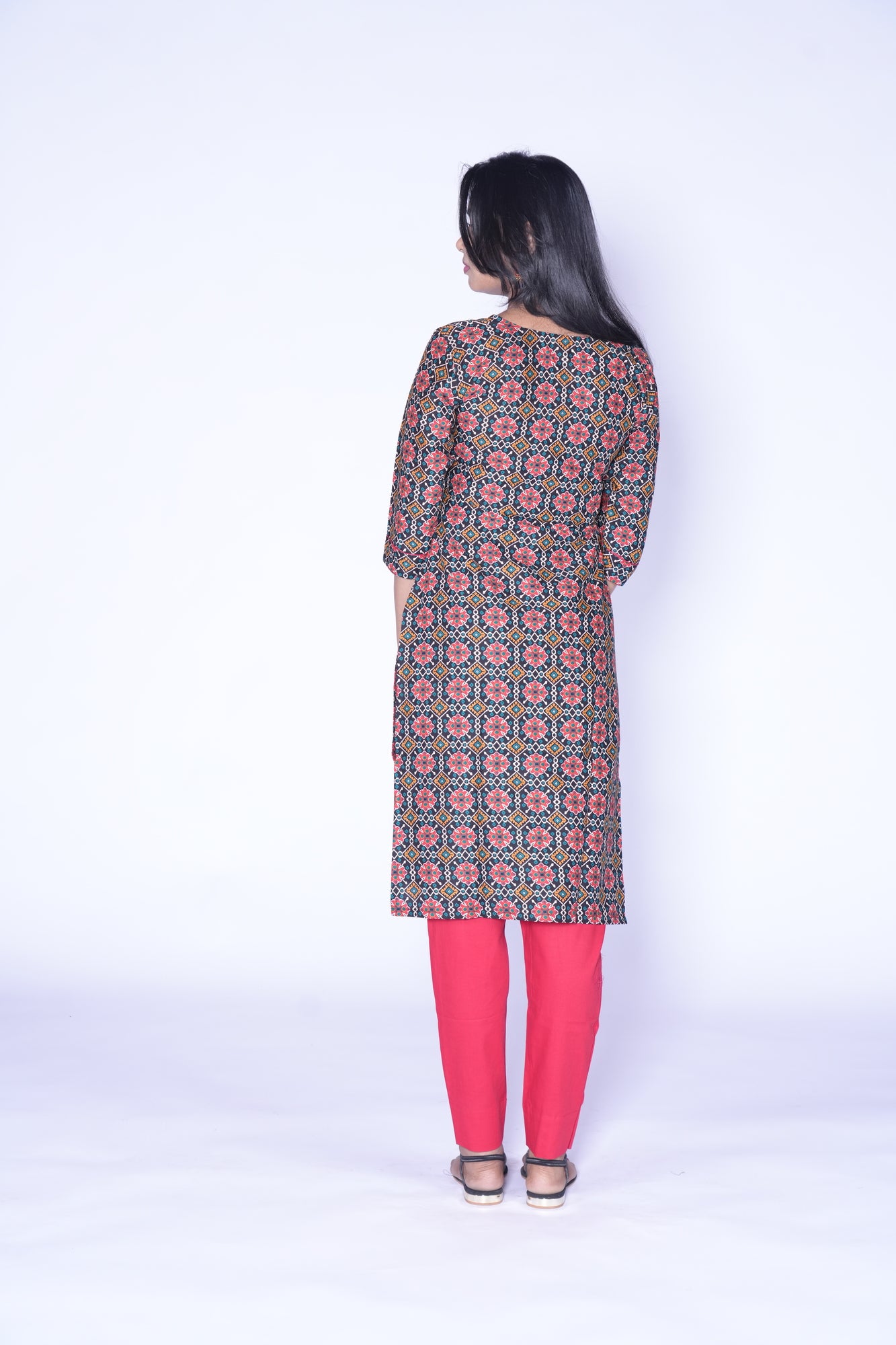- Black and Red Combination kurti with Patola Design