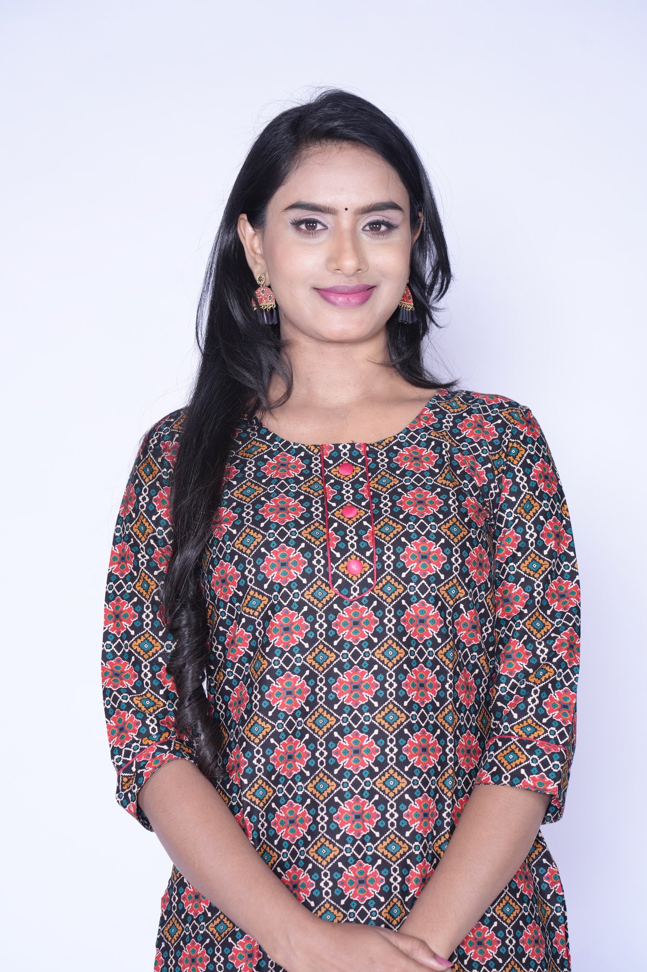 - Front Button Pattern Round Neck