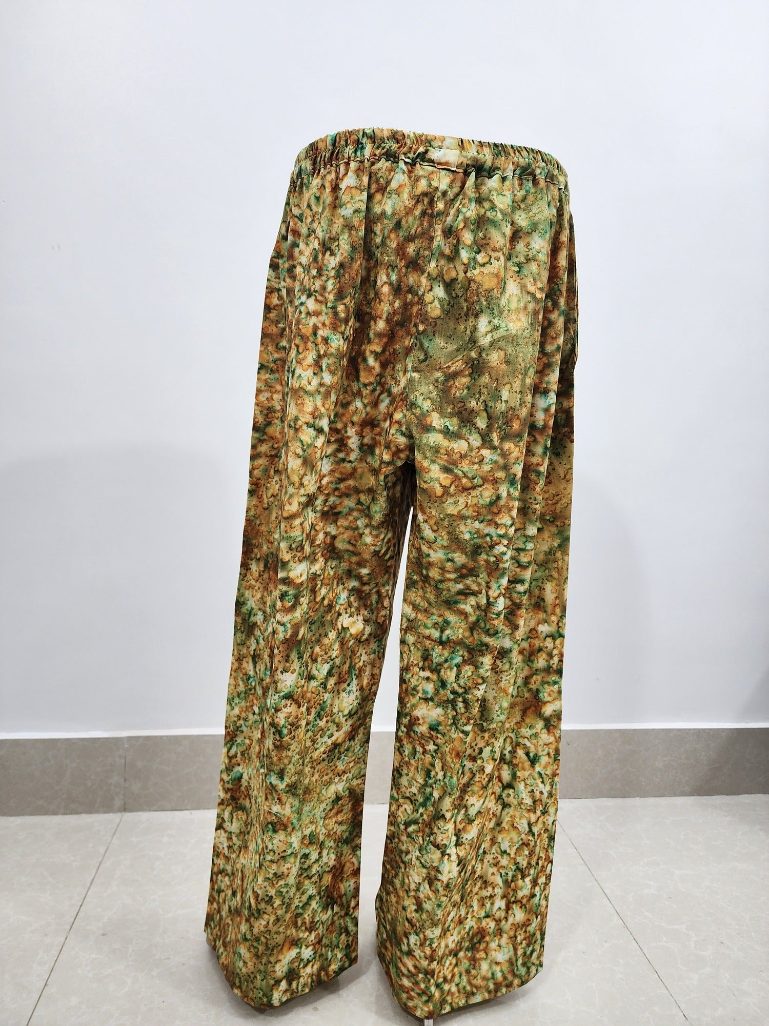 Shibori Print Mustard Yellow Green Cotton Palazzo